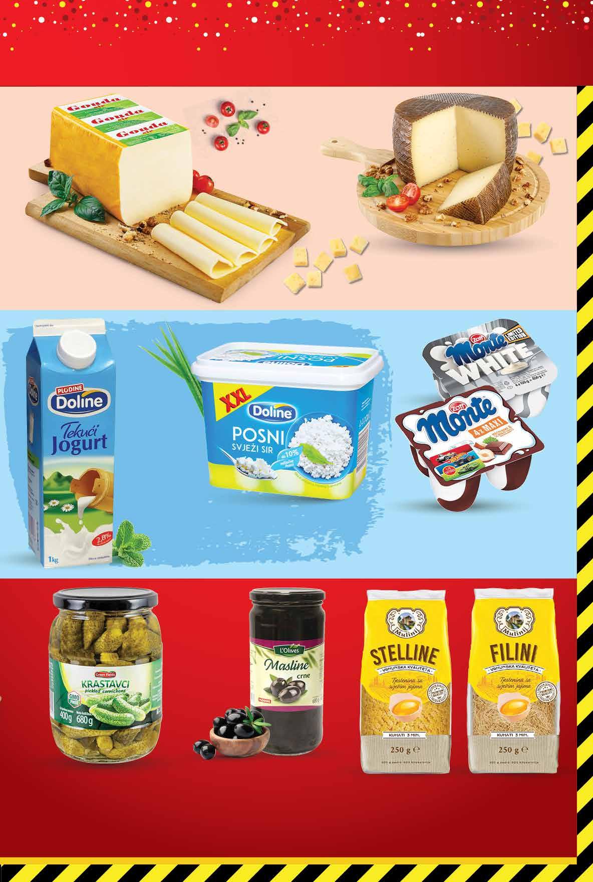 Sir Curado Reviques miješani sir 1 kg ZOTT MONTE Mliječni desert 4x 100 g 1 kg = 39,98 kn 1 kg = 5,30 € DOLINE Posni svježi sir 1 kg DOLINE Tekući jogurt 2,8% m.m. 1 kg 1499 kn 1,99 € 1299 kn 1,72 € 699 kn 0,93 € PLODINE Masline crne *ocijeđena masa 420 g 680 g 1 kg = 30,93 kn 1 kg = 4,10 € GREEN FIELDS Krastavci kornišoni *ocijeđena masa 400 g 680 g 1 kg = 37,48 kn 1 kg = 4,98 € MULINI Tjestenina Filini ili Stelline 250 g 1 kg = 27,96 kn 1 kg = 3,72 € 7499 kn 9,95 € 1599 kn 2,12 € 1899 kn 2,52 € 899 kn 1,19 € PLODINE Sir Gouda polutvrdi 45% m.m. 1 kg 5199 kn 6,90 € SUPER PONUDA SAMO U VELIKA GORICA SUPERMARKETU 1 kg 1 kg 4x 100 g POTRAŽI NA USLUŽNOM PULTU Fotografije proizvoda ne moraju u potpunosti odgovarati stvarnom izgledu proizvoda. Kupnja je moguća samo u količinama primjerenim za kućanstvo. Sve navedene cijene izražene su u kunama s PDV-om. Ne odgovaramo za tiskarske pogreške. 3 3Fotografije proizvoda ne moraju u potpunosti odgovarati stvarnom iz gledu proizvoda. Kupnja je moguća samo u količinama primjerenim za kućanstvo. Sve navedene cijene izražene su u kunama i eurima s PDV-om. Fiksni tečaj konverzije €/kn: 7,53450. Ne odgovaramo za tiskarske pogreške.
