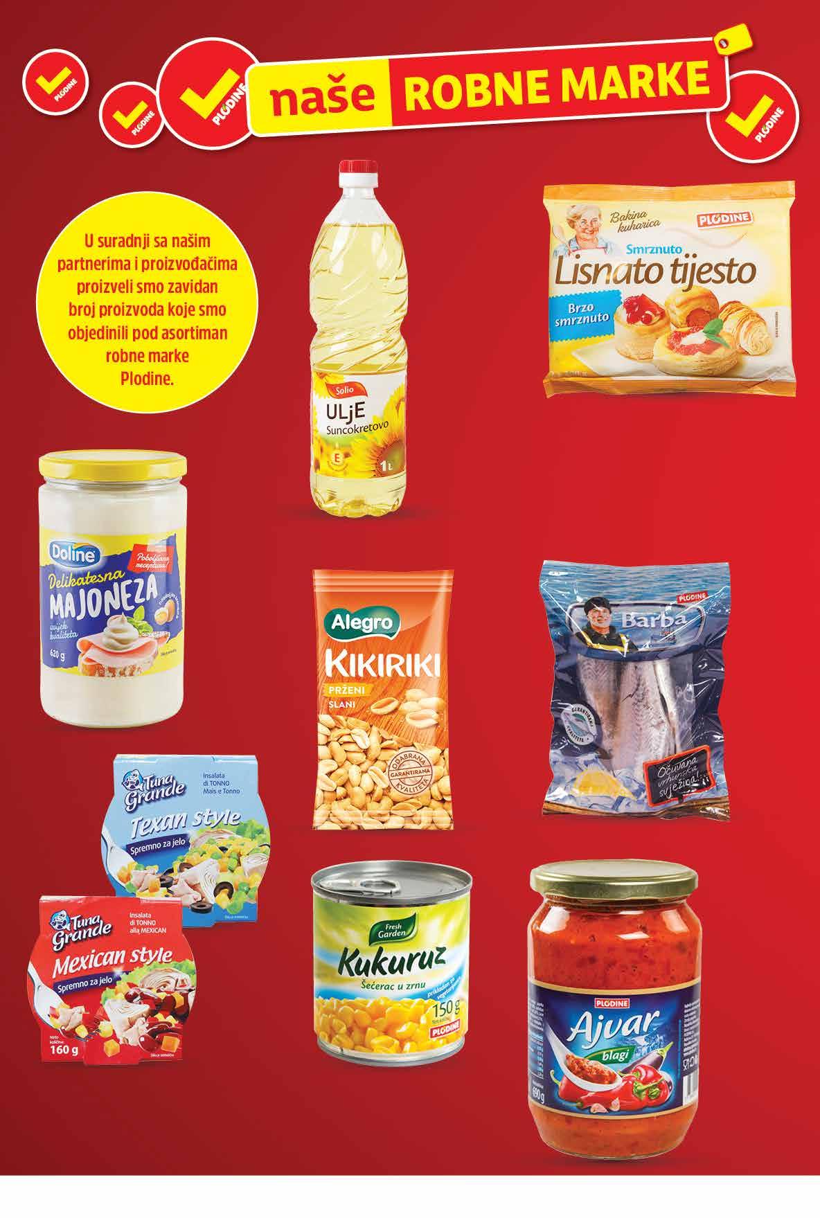 SOLIO Suncokretovo ulje 1 l DOLINE Majoneza delikates 620 g 1 kg = 32,24 kn 1 kg = 3,27 € PLODINE Lisnato tijesto smrznuto 2x 200 g 1 kg = 24,98 kn 1 kg = 3,33 € TUNA GRANDE Tuna salata Mexicana ili Texana 160 g 1 kg = 83,26 kn 1 kg = 11,04 € FRESH GARDEN Kukuruz šećerac *ocijeđena masa 150 g 140 g 1 kg = 24,93 kn 1 kg = 3,29 € PLODINE Ajvar blagi 690 g 1 kg = 17,38 kn 1 kg = 2,30 € ALEGRO Kikiriki slani prženi 500 g 1 kg = 23,98 kn 1 kg = 3,18 € BARBA Oslić bez glave smrznuti 1 kg smrznuto 00,99 999 kn 1,33 € 1199 kn 1,59 € 1199 kn 1,59 € 349 kn 0,46 € 00,99 1199 kn 1,59 € 00,99 1999 kn 2,65 € 00,99 2399 kn 3,98 € 00,99 1499 kn 1,99 € Fotografije proizvoda ne moraju u potpunosti odgovarati stvarnom izgledu proizvoda. Kupnja je moguća samo u količinama primjerenim za kućanstvo. Sve navedene cijene izražene su u kunama i eurima s PDV-om. Fiksni tečaj konverzije €/kn: 7,53450. Ne odgovaramo za tiskarske pogreške.20