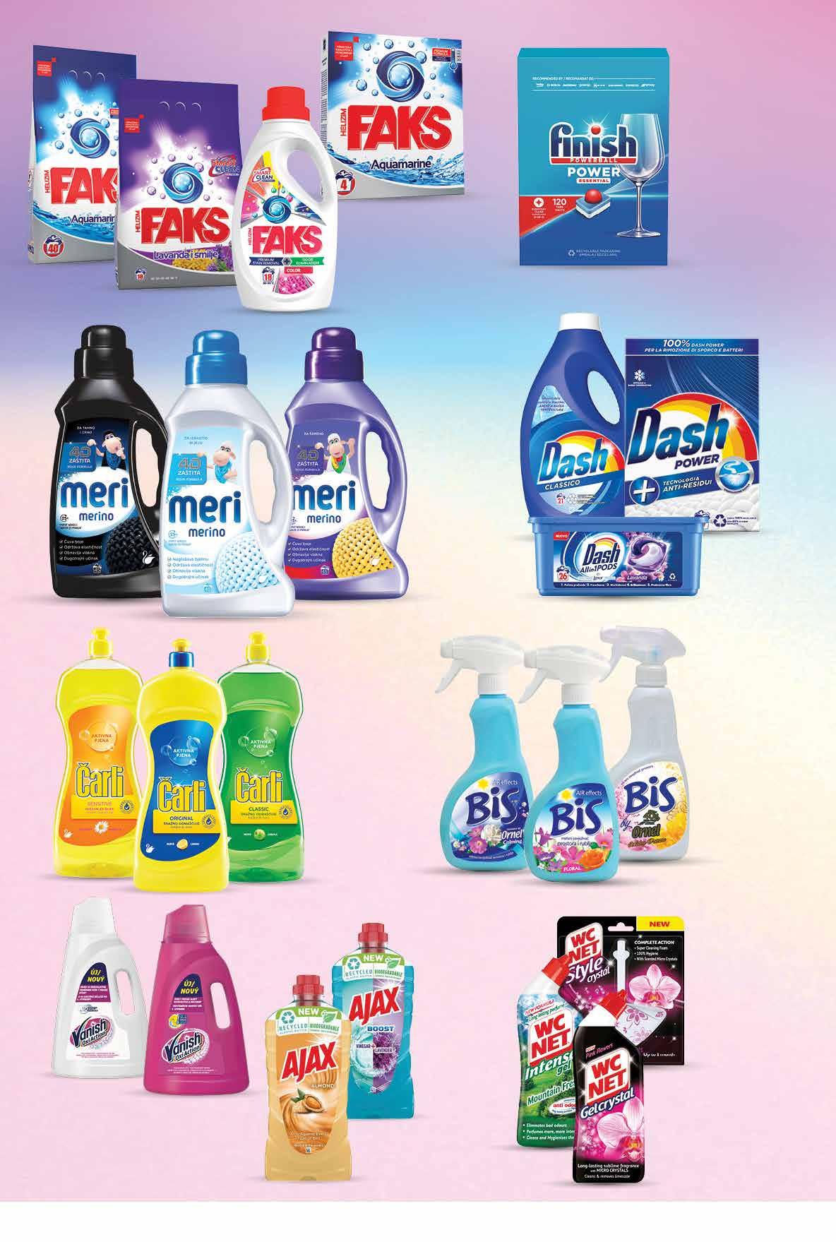 00,99 1199 kn 1,59 € DASH odabrani proizvodi -30% FAKS odabrani proizvodi -40% MERI MERINO Deterdžent za rublje razne vrste 2,7 l 1 l = 12,96 kn 1 l = 1,72 € WC NET Gel za čišćenje i dezinfekciju toaletne školjke razne vrste 750 ml ili 36,5-38 g 1 l = 15,99 kn 1 l = 2,12 kn € 1 kg = 315,53 - 324,05 kn 1 kg = 41,84 - 42,97 € AJAX Sredstvo za čišćenje podova razne vrste 1 l ČARLI Deterdžent za posuđe razne vrste 1,35 l 1 l = 11,84 kn 1 l = 1,57 € BIS Osvježivač prostora razne vrste 400 ml 1 l = 62,48 kn 1 l = 8,30 € 00,99 3499 kn 4,64 € 00,99 1199 kn 1,59 € 00,99 1599 kn 2,12 € 00,99 2499 kn 3,32 € 00,99 4999 kn 6,63 € VANISH Odstranjivač mrlja razne vrste 3 l 1 l = 16,66 kn 1 l = 2,21 € FINISH Tablete za perilicu posuđa All in one 120 komada 1 kom = 0,67 kn 1 kom = 0,09 € 00,99 7999 kn 10,62 € 2,7 l 1,35 l Fotografije proizvoda ne moraju u potpunosti odgovarati stvarnom izgledu proizvoda. Kupnja je moguća samo u količinama primjerenim za kućanstvo. Sve navedene cijene izražene su u kunama i eurima s PDV-om. Fiksni tečaj konverzije €/kn: 7,53450. Ne odgovaramo za tiskarske pogreške. 33