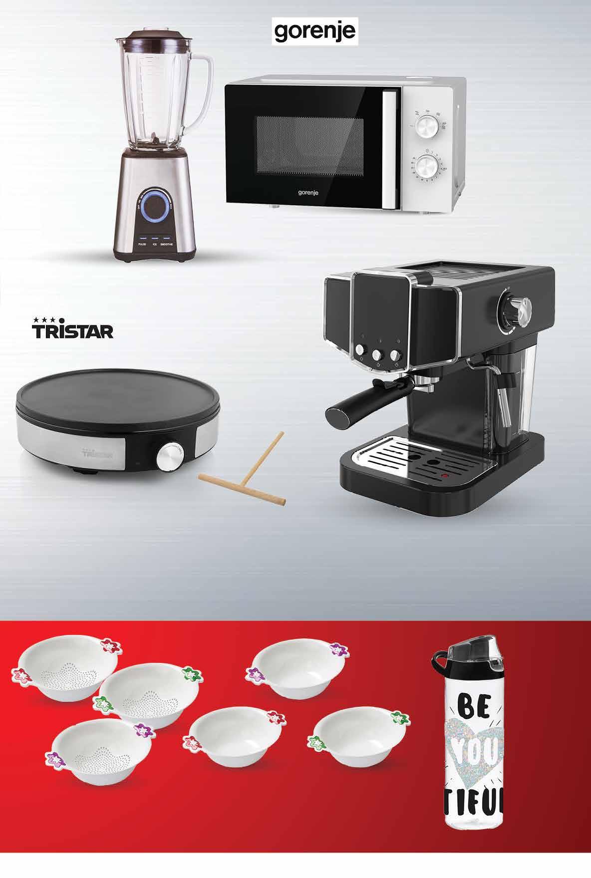 • tepsija za pečenje od lijevanog aluminija Ø 30 centimetara • vrrlo praktičan dizajn s integriranim ručkama • nožicama protiv klizanja i sustavom za pohranu kabela. • kućište od nehrđajućeg čelika • oštrice od nehrđajućeg čelika • LED svjetlo • funkcija drobljenja leda • funkcija automatskog čišćenja 6 x 56,67 kn 6 x 7,52 € 00,99 33999 kn 45,12 € 6 x 83,33 kn 6 x 11,06 € 00,99 49999 kn 66,36 €00,99 18999 kn 25,22 € Aparat za espresso kavu Blender TRISTAR Aparat za palačinke GORENJE Mikrovalna pećnica • MO17E1 WH • Aqua Clean automatsko čišćenje bez deterdženata • funkcija odmrzavanja • pet razina snage 6 x 83,33 kn 6 x 11,06 € 00,99 49999 kn 66,36 € Zdjela • pvc • 29 cm00,99 1299 kn 1,72 € 00,99 1299 kn 1,72 € 00,99 1799 kn 2,39 € Cjedilo • pvc • 29 cm Boca • pvc • 0,75 l 1050 W 1,2 ml 1200 W 1000 W 1,8 l 700 W 17 l Fotografije proizvoda ne moraju u potpunosti odgovarati stvarnom izgledu proizvoda. Kupnja je moguća samo u količinama primjerenim za kućanstvo. Sve navedene cijene izražene su u kunama i eurima s PDV-om. Fiksni tečaj konverzije €/kn: 7,53450. Ne odgovaramo za tiskarske pogreške. 49