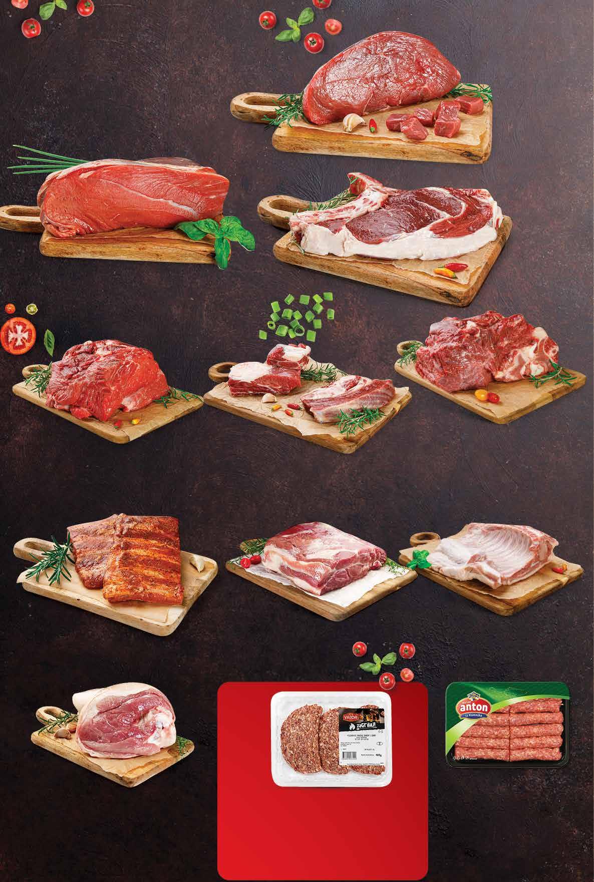 00,99 2499 kn 3,32 € 00,99 3699 kn 4,91 € 00,99 6199 kn 8,23 € 00,99 6499 kn 8,63 € 00,99 2699 kn 3,58 € 00,99 2199 kn 2,92 € Odojak i prasetina za pečenje na pultu 1 kg 00,99 4199 kn 5,57 € Juneća rebra i prsa s kostima na pultu 1 kg Juneća lopatica bez kosti na pultu 1 kg Juneći vrat s kosti u komadu ili narezan na pultu 1 kg00,99 6199 kn 8,23 € 00,99 4899 kn 6,50 € Svinjski vrat s kostima u komadu ili narezan na pultu 1 kg 00,99 2399 kn 3,18 € Juneći vrat bez kosti u komadu ili narezan na pultu 1 kg Juneća leđa s kostima u komadu ili narezano na pultu 1 kg 00,99 5099 kn 6,77 € Juneći but bez kosti na pultu 1 kg Svinjska marinirana rebra vakuum pakiranje 1 kg marinirano MESAR ANTON IZ KAMNIKA Leskovački ćevapčići 450 g 1 kg = 48,87 kn 1 kg = 6,49 € Svinjska koljenica s kostima za pečenje i kuhanje svježa na pultu 1 kg 00,99 1699 kn 2,25 € VAJDA Pljeskavica punjena šunkom i sirom 465 g 1 kg = 53,74 kn 1 kg = 7,14 € BEZ KOSTI BEZ KOSTI Fotografije proizvoda ne moraju u potpunosti odgovarati stvarnom izgledu proizvoda. Kupnja je moguća samo u količinama primjerenim za kućanstvo. Sve navedene cijene izražene su u kunama i eurima s PDV-om. Fiksni tečaj konverzije €/kn: 7,53450. Ne odgovaramo za tiskarske pogreške.14