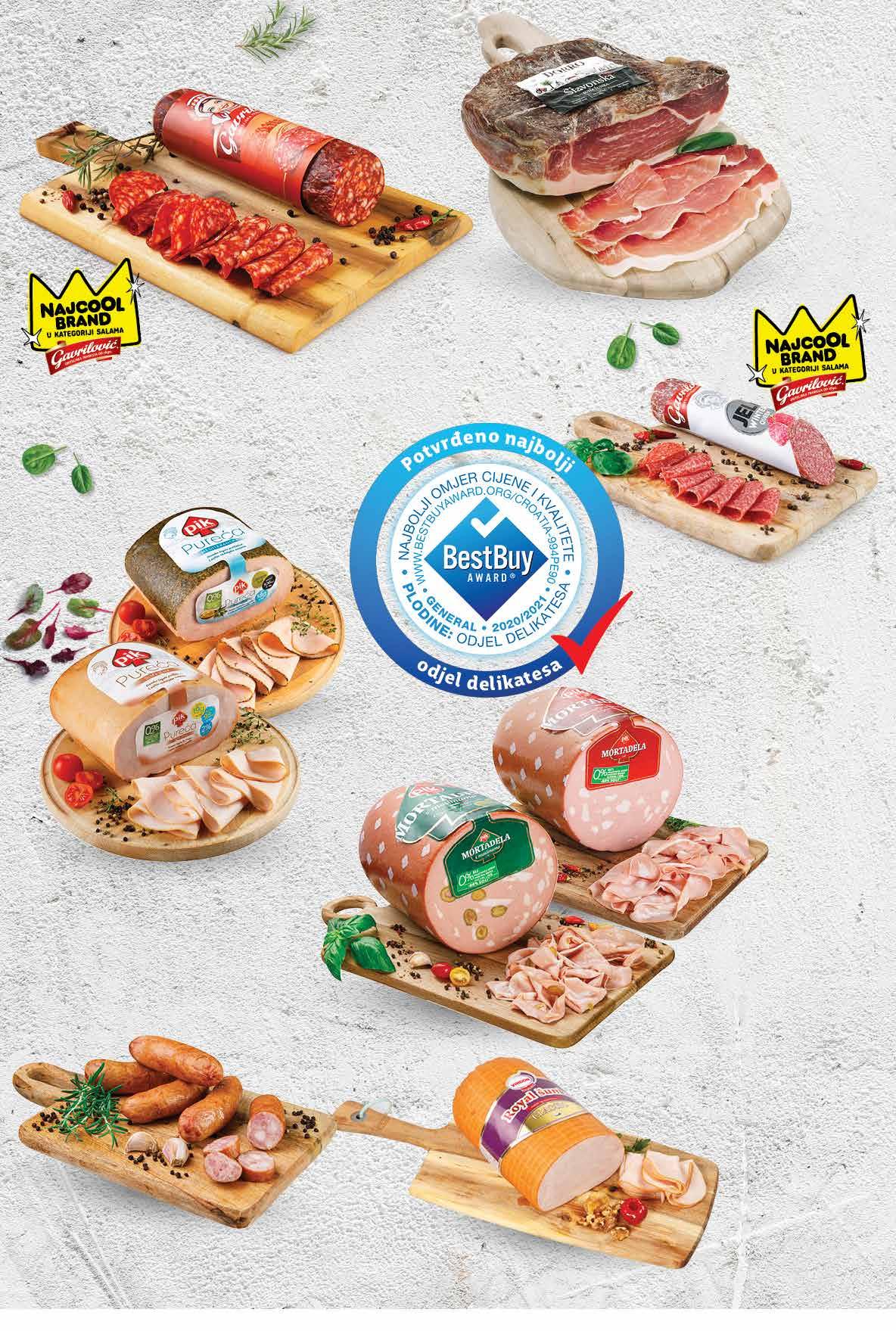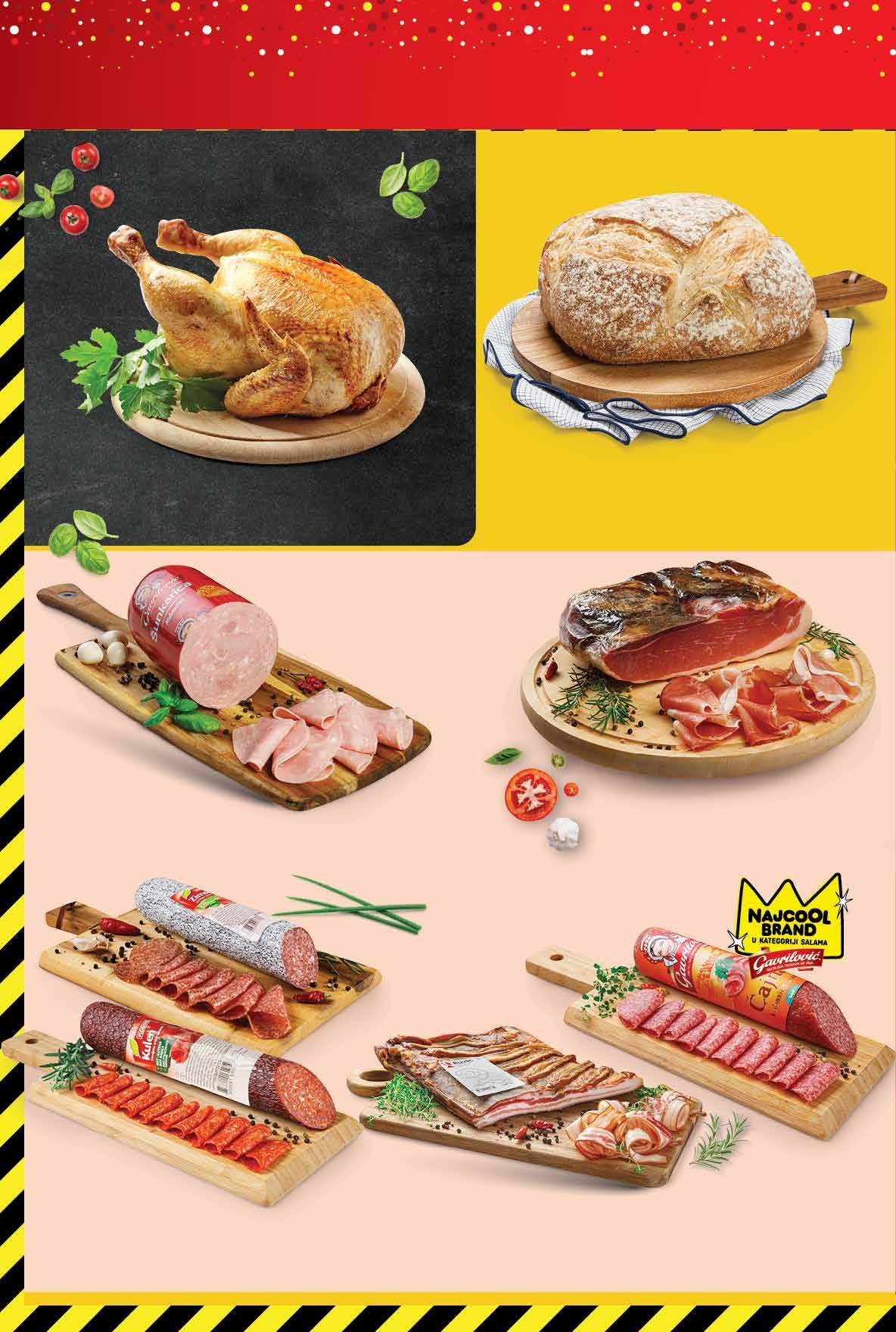 SUPER PONUDA! 2199 kn 2,92 € PLODINE Zimska ili kulen salama trajni proizvod 1 kg PLODINE Suha šunka trajni proizvod 1 kg GAVRILOVIĆ Čajna maksi trajna kobasica 1 kg GAVRILOVIĆ Šunkarica polutrajni proizvod 1 kg Pečeno pile komad RAVLIĆ Panceta trajni proizvod 1 kg 099 kn 0,99 € 6999 kn 9,29 € 899 kn 1,19 € 7999 kn 10,62 € 5999 kn 7,96 € 7999 kn 10,62 € 3999 kn 5,31 € Samostanski kruh 400 g 1 kg = 22,48 kn 1 kg = 2,98 € komad UV I J EK PE Č E NO SVJEŽE SUPER PONUDA SAMO U VELIKA GORICA SUPERMARKETU POTRAŽI NA USLUŽNOM PULTU odjel delikatesa otvrđe n o najbol Fotografije proizvoda ne moraju u potpunosti odgovarati stvarnom izgledu proizvoda. Kupnja je moguća samo u količinama primjerenim za kućanstvo. Sve navedene cijene izražene su u kunama s PDV-om. Ne odgovaramo za tiskarske pogreške.2 2 Fotografije proizvoda ne moraju u potpunosti odgovarati stvarnom izgledu proizvoda. Kupnja je moguća samo u količinama primjerenim za kućanstvo. Sve navedene cijene izražene su u kunama i eurima s PDV-om. Fiksni tečaj konverzije €/kn: 7,53450. Ne odgovaramo za tiskarske pogreške.
