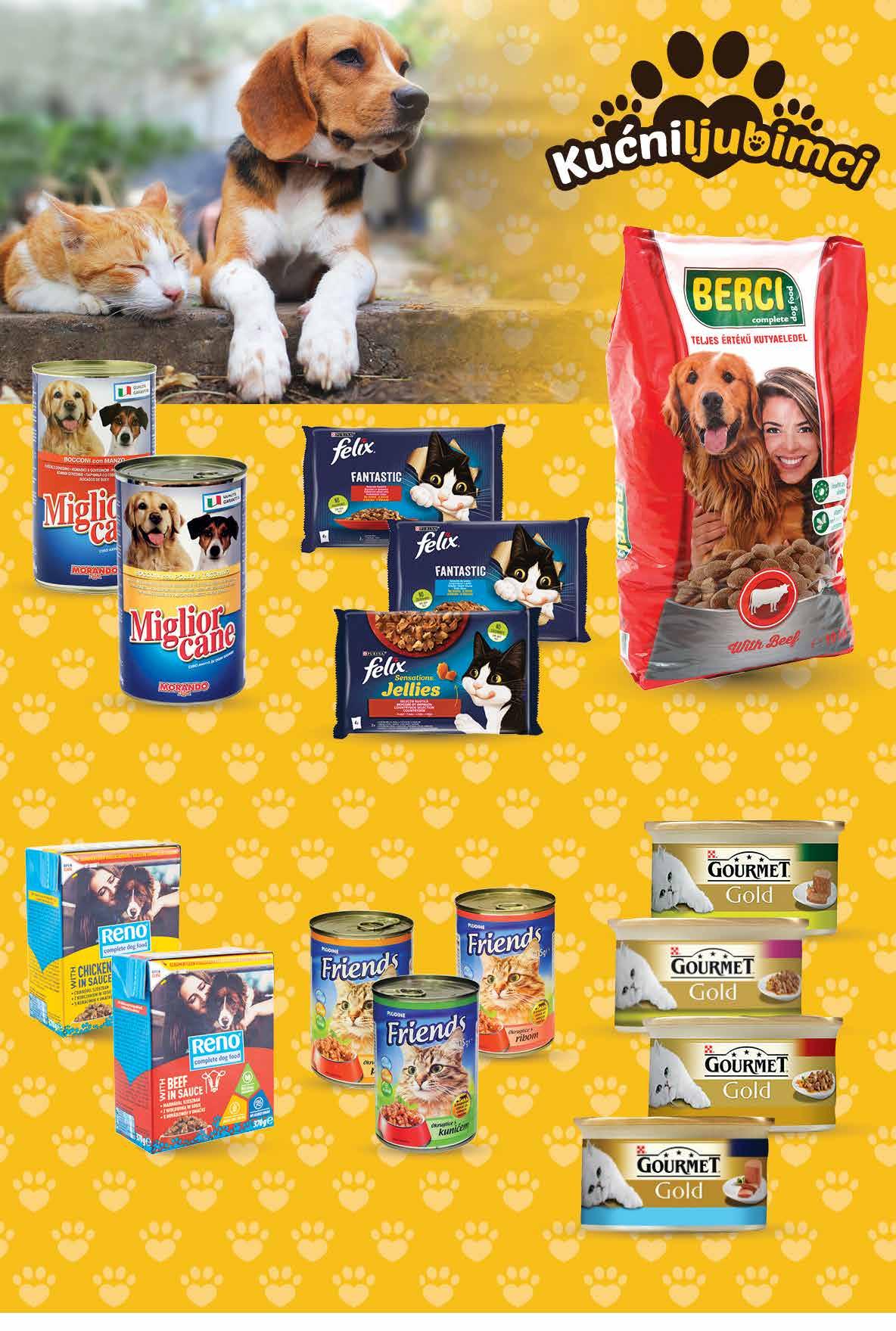 GOURMET Hrana za mačke odabrani proizvodi -25% FELIX Hrana za mačke odabrane vrste 4x 85 g 1 kg = 39,68 kn 1 kg = 5,26 € FRIENDS Hrana za mačke mokra razne vrste 415 g 1 kg = 9,61 kn 1 kg = 1,28 € BERCI Hrana za pse 10 kg 1 kg = 7,00 kn 1 kg = 0,93 € MIGLIORCANE Hrana za pse razne vrste 1250 g 1 kg = 10,39 kn 1 kg = 1,38 € RENO Hrana za pse odabrane vrste 370 g 1 kg = 21,59 kn 1 kg = 2,86 € 0,53 399 kn 0,53 € 6999 kn 9,29 €1349 kn 1,79 € 1299 kn 1,72 € 799 kn 1,06 € Fotografije proizvoda ne moraju u potpunosti odgovarati stvarnom izgledu proizvoda. Kupnja je moguća samo u količinama primjerenim za kućanstvo. Sve navedene cijene izražene su u kunama i eurima s PDV-om. Fiksni tečaj konverzije €/kn: 7,53450. Ne odgovaramo za tiskarske pogreške. 31