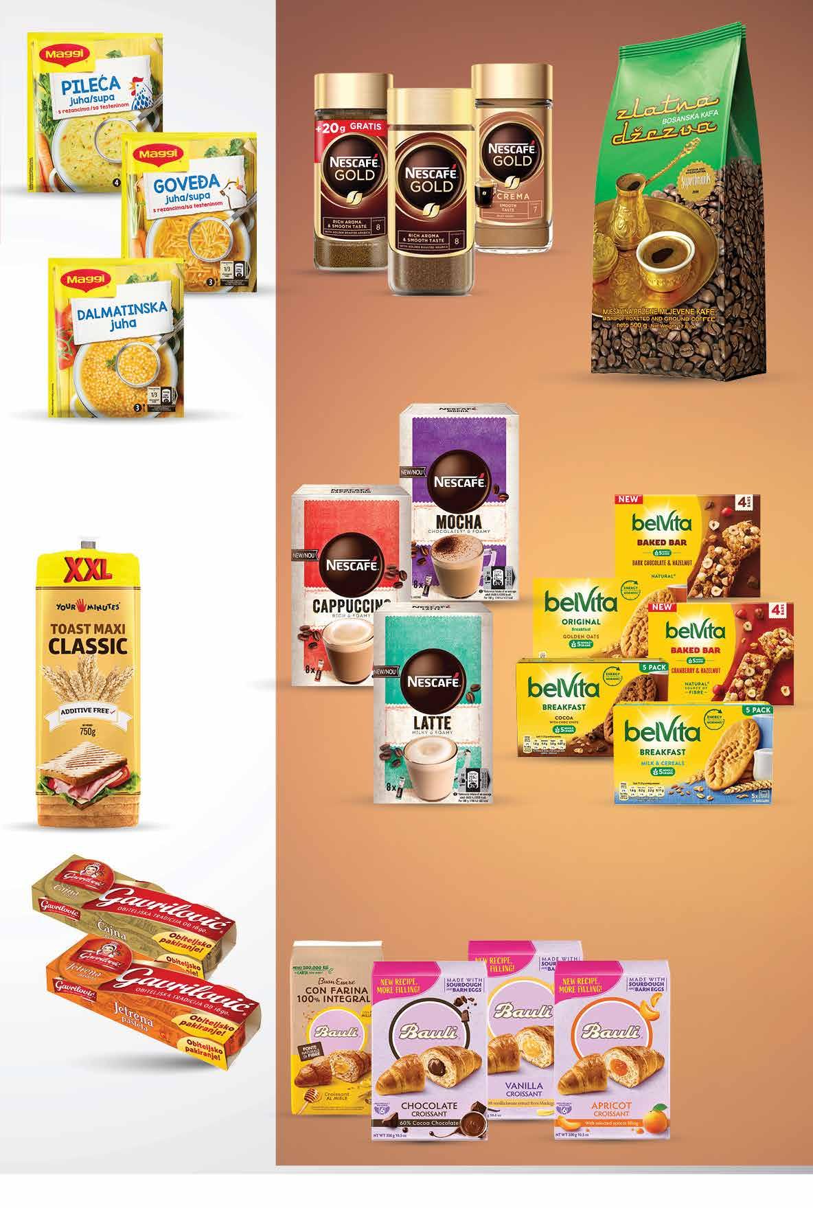 1499 kn 1,99 € 1099 kn 1,46 € TVOJIH 5 MINUTA Toast classic XXL 750 g 1 kg = 14,65 kn 1 kg = 1,95 € BAULI Croissant odabrane vrste 225 - 300 g 1 kg = 49,97 - 66,62 kn 1 kg = 6,63 - 8,84 € ZLATNA DŽEZVA Kava mljevena 500 g 1 kg = 67,98 kn 1 kg = 9,02 € NESCAFE Instant kava gold ili gold crema staklenka 200 g 1 kg = 274,95 kn 1 kg = 36,50 € MAGGI Instant juha goveđa, pileća ili dalmatinska 37 - 40 g 1 kg = 74,75 - 80,81 kn 1 kg = 10,00 - 10,81 € GAVRILOVIĆ Čajna ili jetrena pašteta 3x 100 g 1 kg = 66,63 kn 1 kg = 8,83 € BELVITA Keksi 160 - 225 g odabrani proizvodi -25%NESCAFE Cappuccino classic, latte ili mocha 120 g 1 kg = 124,92 kn 1 kg = 16,58 € 299 kn 0,40 € 00,99 1999 kn 2,65 € 00,99 1499 kn 1,99 € 00,99 3399 kn 4,51 € 5499 kn 7,30 € Fotografije proizvoda ne moraju u potpunosti odgovarati stvarnom izgledu proizvoda. Kupnja je moguća samo u količinama primjerenim za kućanstvo. Sve navedene cijene izražene su u kunama i eurima s PDV-om. Fiksni tečaj konverzije €/kn: 7,53450. Ne odgovaramo za tiskarske pogreške. 27