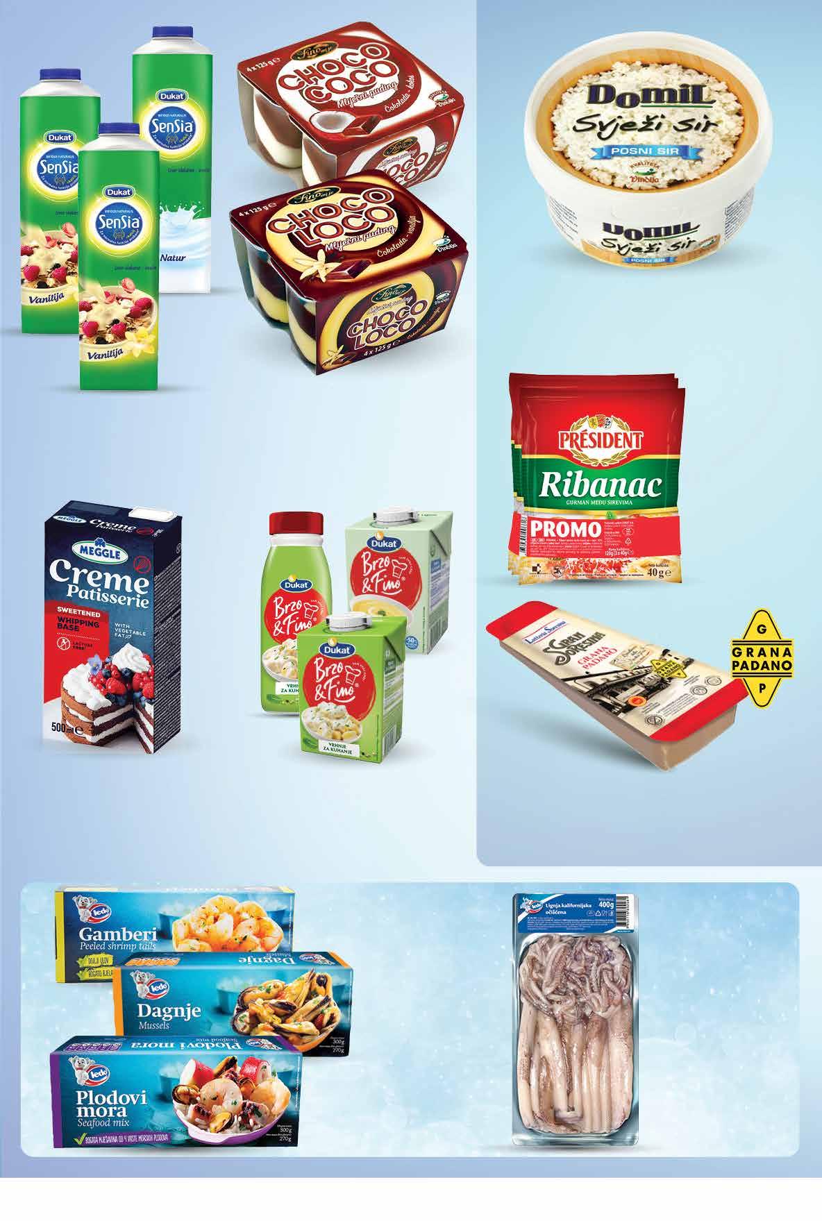 1499 kn 1,99 € 00,99 899 kn 1,19 € MEGGLE Slatko vrhnje Creme Patisserie 25% biljne masti 500 ml 1 l = 25,98 kn 1 l = 3,44 € PRESIDENT Ribanac 35% m.m. 3x 40 g 1 kg = 166,58 kn 1 kg = 22,08 € LATTERIA SORESINA Sir Grana Padano 200 g 1 kg = 124,95 kn 1 kg = 16,60 € VINDIJA Svježi posni sir Domil 500 g 1 kg = 29,98 kn 1 kg = 3,98 € DUKAT Vrhnje za kuhanje bez konzervansa 20% ili 10% m.m. 500 g 1 kg = 33,98 kn 1 kg = 4,50 € FINO MI JE Mliječni puding Choco-Loco ili Choco-Coco 4x 125 g 1 kg = 17,98 kn 1 kg = 2,38 € DUKAT Jogurt Sensia natur ili vanilija 1 kg LEDO Lignja kalifornijska očišćena smrznuta 400 g 1 kg = 99,98 kn 1 kg = 13,28 € 00,99 1699 kn 2,25 € 00,99 1399 kn 1,86 € 00,99 1299 kn 1,72 € 00,99 1999 kn 2,65 € 00,99 2499 kn 3,32 € LEDO Gamberi Dagnje ili Plodovi mora smrznuti 250 - 300 g odabrani proizvodi -20% 00,99 3999 kn 5,31 € 1 kg Fotografije proizvoda ne moraju u potpunosti odgovarati stvarnom izgledu proizvoda. Kupnja je moguća samo u količinama primjerenim za kućanstvo. Sve navedene cijene izražene su u kunama i eurima s PDV-om. Fiksni tečaj konverzije €/kn: 7,53450. Ne odgovaramo za tiskarske pogreške. 25