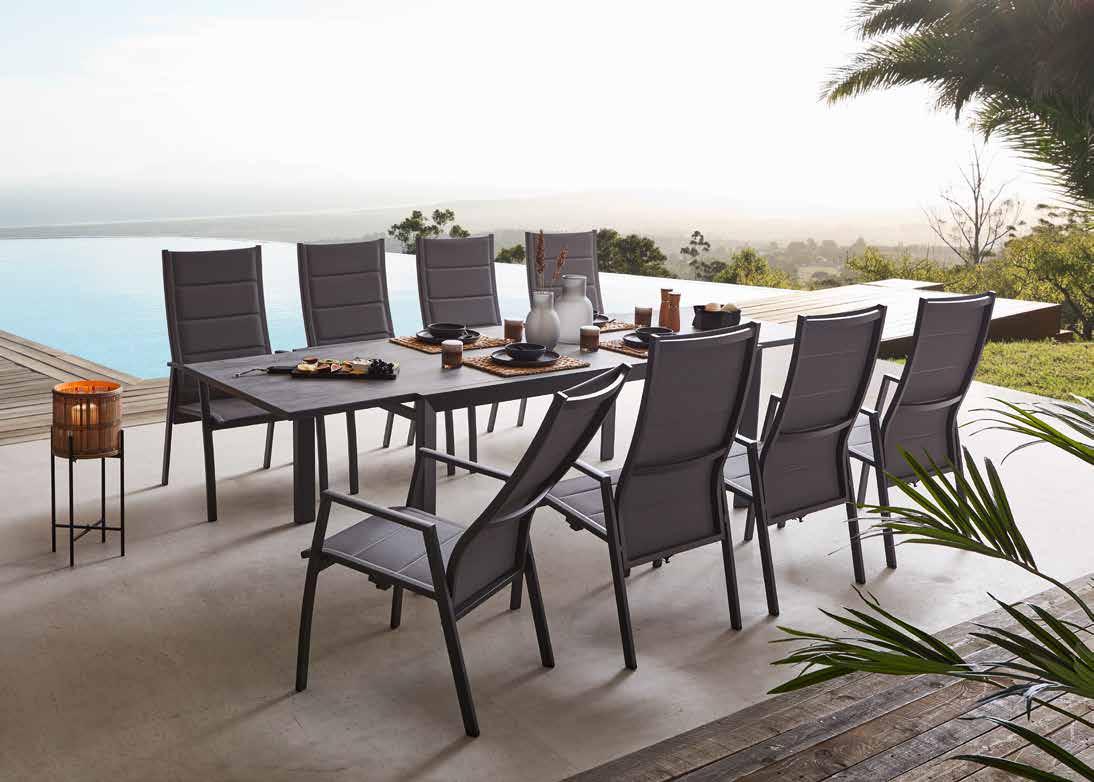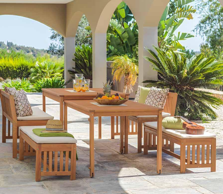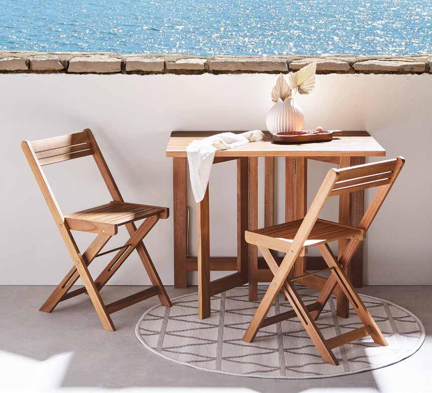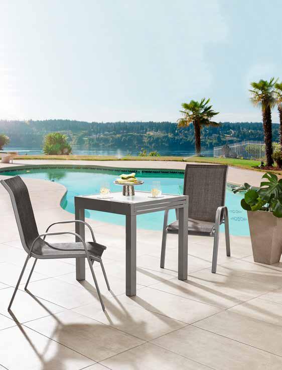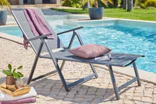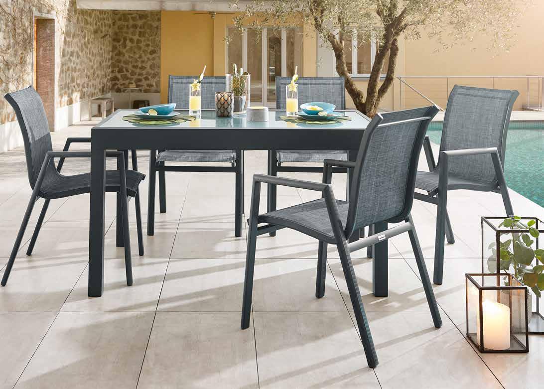 Plano je moderna vrtna garnitura koja će biti centralna figura svih vaših vrtnih zabava. Konstrukcija garniture je od aluminija antracit boje a toplinu i elegantan dojam osigurat će ploča stola od fsc tikovog drveta kao i detalji od tikovine na rukonaslonima stolica te udobno sjedište od antracit tekstilen tkanine. Garnitura se sastoji od elemenata koji su dostupni zasebno i time možete odabirati stil i broj stolica koji odgovara vašim potrebama. Složiva stolica, š/v/d: 58x91x70 cm, nosivosti do 130 kg. Sklopiva stolica, š/v/d: 63/116/60 cm, nosivosti do 120 kg. Razvlačni stol, preklopni uložak, š/v/d: 150-210x74x90 cm, nosivosti do 60 kg. (20530001/01,02,07)
