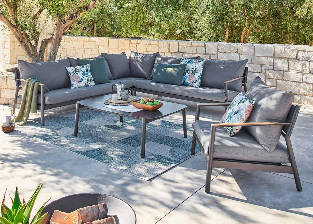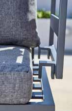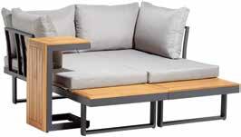 Lounge garnitura Monti ispunit će sve vaše potrebe za velikom i udobnom kutnom garniturom koja poziva da se udobno smjestite i drijemajući provedete sunčano popodne. Aluminijski okvir antracit boje dekoriran je naslonima za ruke od tikovog drveta dok će izdašni jastuci u sivoj boji omogućiti da se udobno smjestite. Garnitura se sastoji od dvije klupe š/v/d: 180x67x78 cm nosivosti do 240 kg, kutnog elementa š/v/d: 78x67x78 cm nosivosti do 120 kg, i stolića sa sivim kaljenim staklom š/v/d: 110x38x110 cm nosivosti do 30 kg. Ukupna dimenzija kutne garniture je 258x67x258 cm. Sivi jastuci za sjedenje i naslon su uključeni u cijenu. Kao zaseban element dostupna je i fotelja Monti, š/v/d: 78x67x79 cm, nosivosti do 120 kg. Dekorativni jastuci uz nadoplatu. (07610046/01,09)