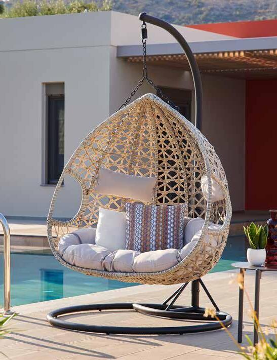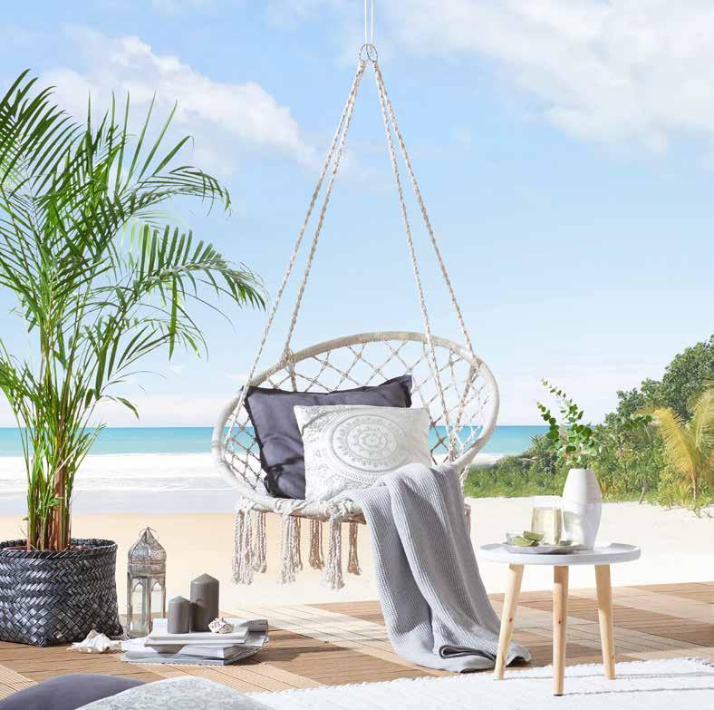 U vrtu, uz more, jezero ili bazen, u kutku spavaće sobe ili u sredinu dnevne sobe, kamo god da postavite ovu sanjivu viseću fotelju ona će biti idealna za savršene trenutke opuštanja. Viseća fotelja, s resicama, pleteni pamuk boja: bijela, siva i ljubičasta, nosivost do 110 kg, stropna montaža, dimenzija 80/60x120 cm, metalni obruč. (39320173/04-05; 07610048/01-02)