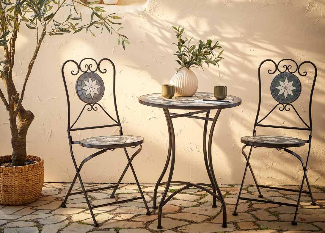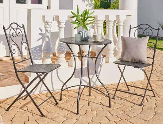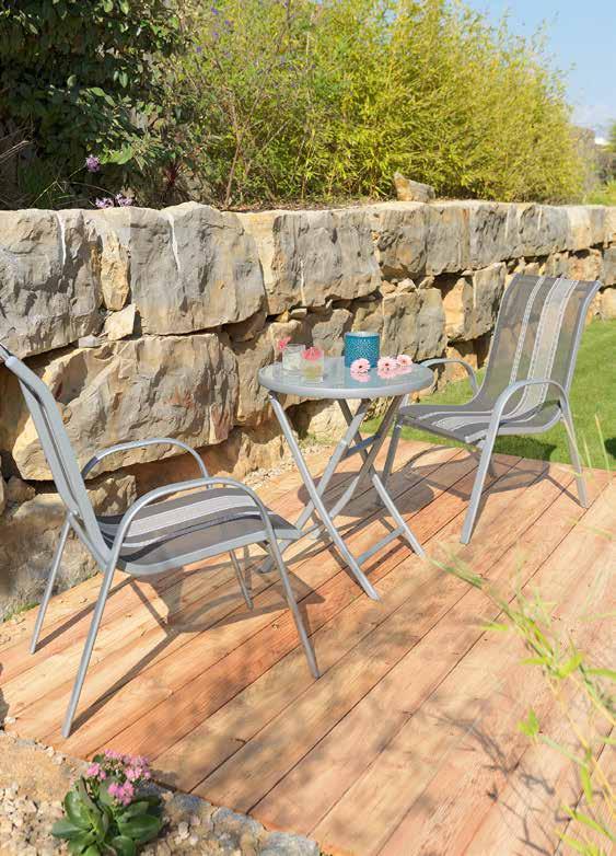 Vrtna garnitura Niata je praktičan a opet iznimno atraktivan set koji će se lako uklopiti u svaki ambijent. Konstrukcija od pocinčanog čelika antracit boje idealna je podloga za sjedište i naslon od pvc pletiva natur boje. Elegantni stolić se lako održava jer je gornja površina zaštićena plohom od prozirnog kaljenog stakla.