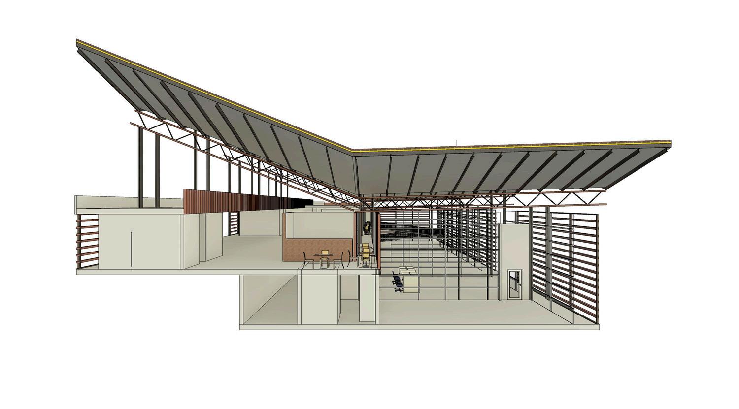 SISTEMA DE MUROS LIVIANOS, CON COLUMNAS IPE, CUBIERTA EN CERCHAS Y TEJA TIPO SANDWICH
