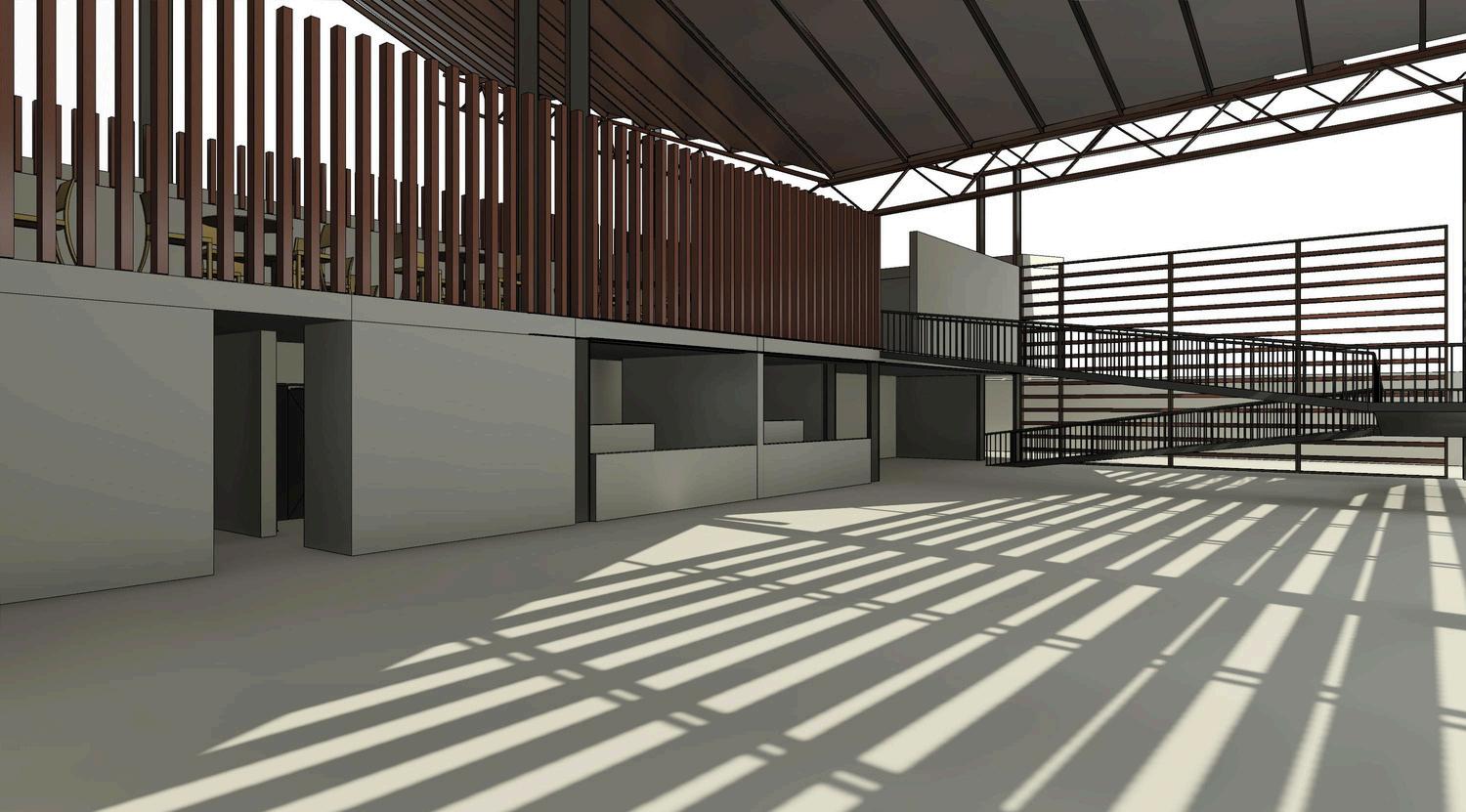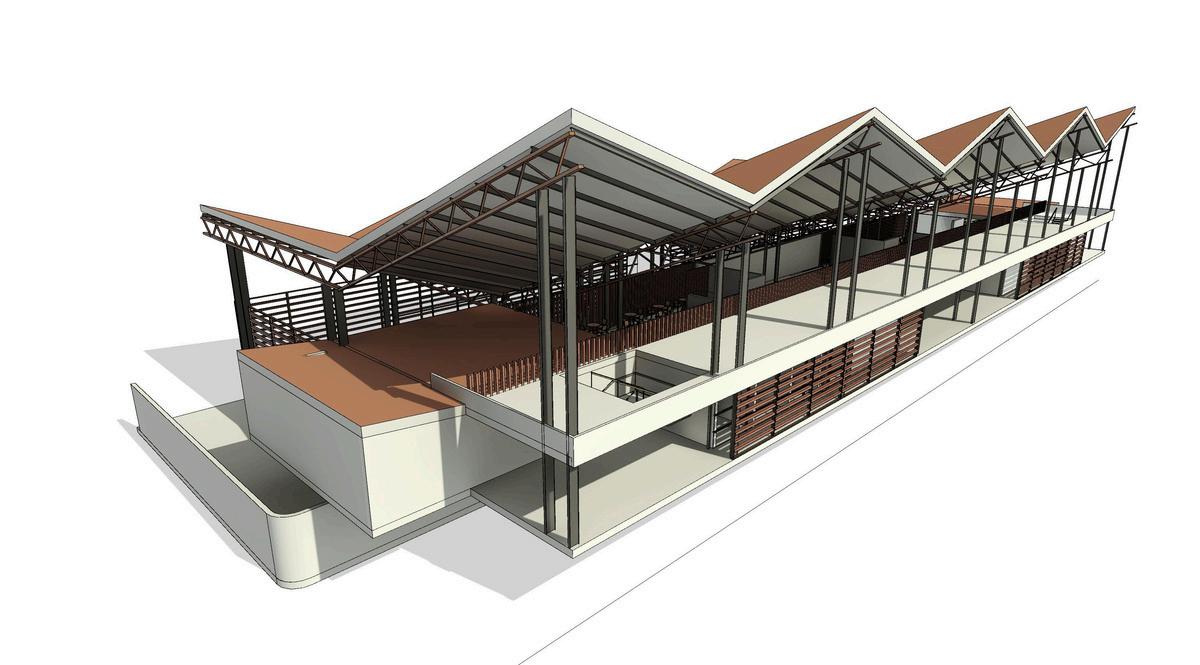 Se propone una solución bioclimática con una cubierta que capta agua lluvia y un espacio público que conecta el aeropuerto con la ciudad, fortaleciendo la integración urbana.