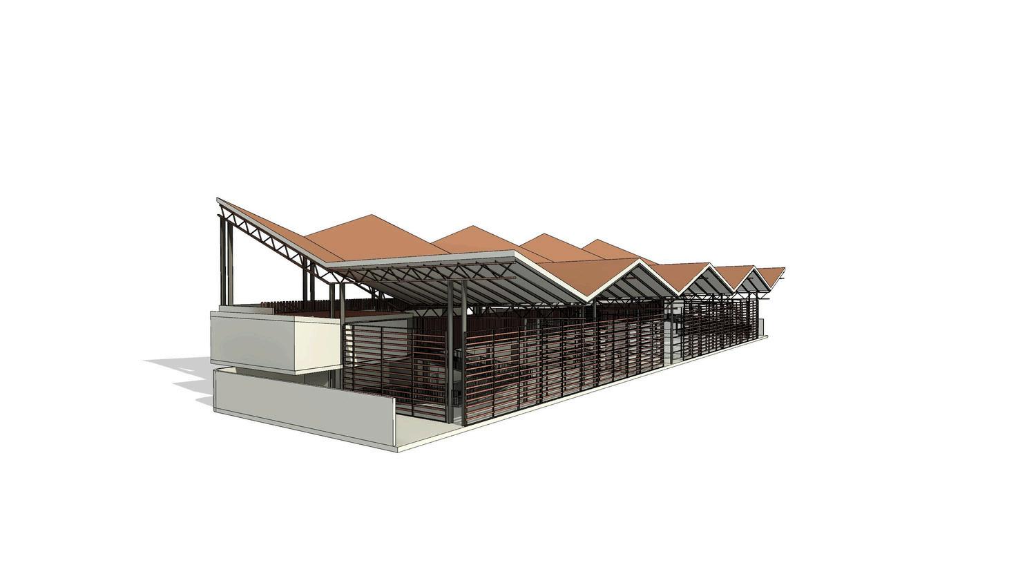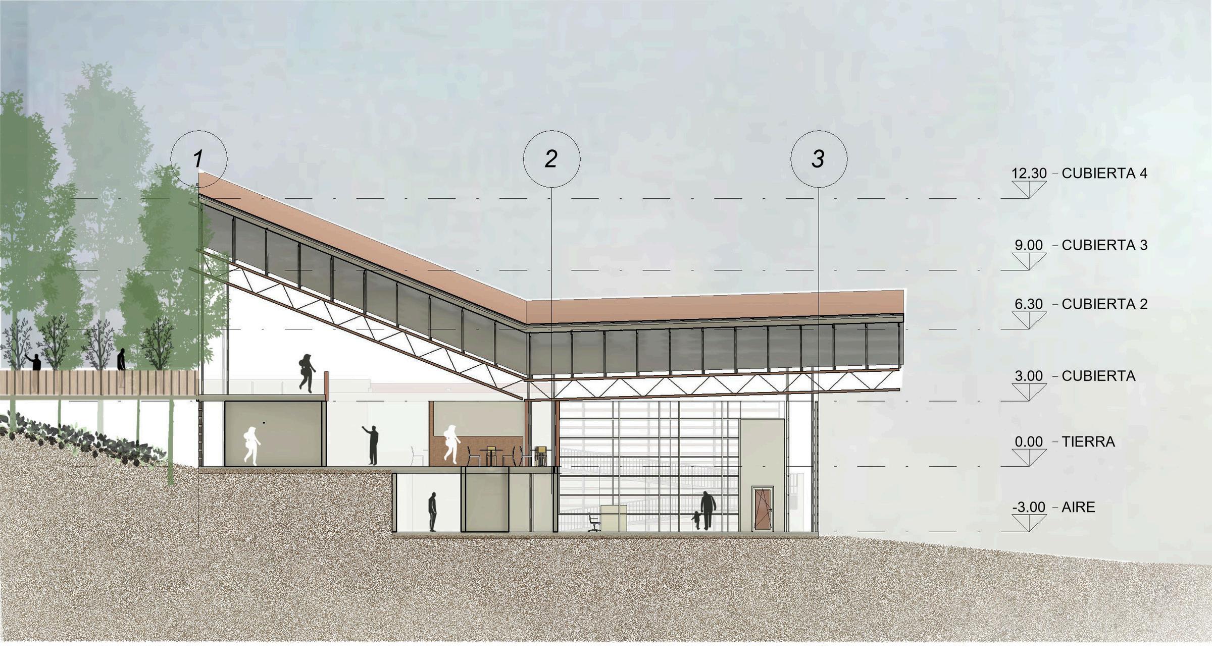 Se propone una solución bioclimática con una cubierta que capta agua lluvia y un espacio público que conecta el aeropuerto con la ciudad, fortaleciendo la integración urbana.