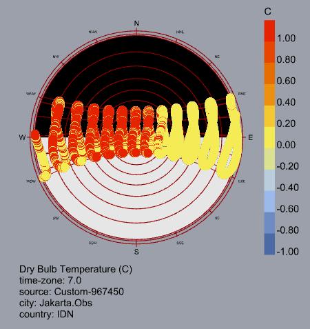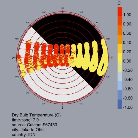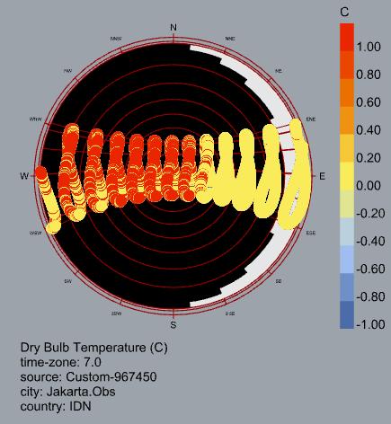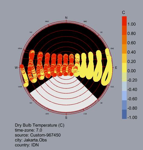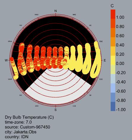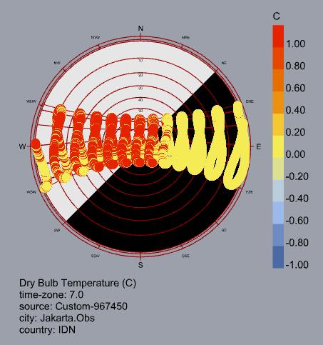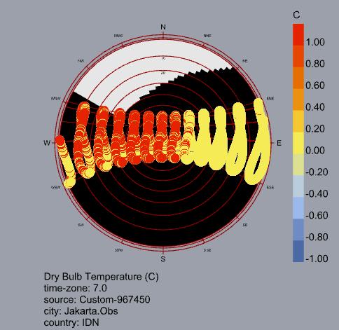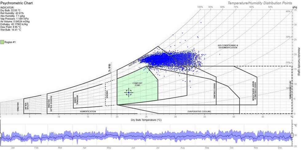 El análisis bioclimático de Yakarta evidencia un clima cálido y húmedo estable durante todo el año, sin estaciones marcadas y con temperaturas que permanecen entre 26 °C y 30 °C. Estas condiciones generan una alta sensación térmica y demandan estrategias enfocadas en el enfriamiento y control de humedad.