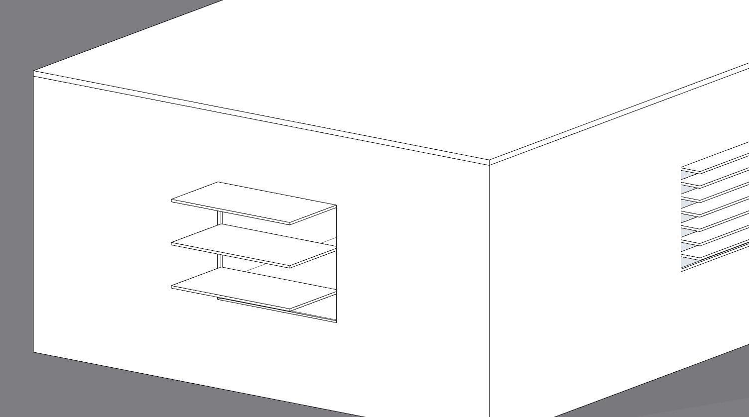 La fachada B requiere de aleros horizontales muy profundos para proteger del sol con ángulos altos aproximadamente 80°
