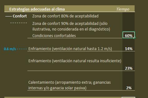 Condiciones confortables (sin sistemas activos): 60% del tiempo.