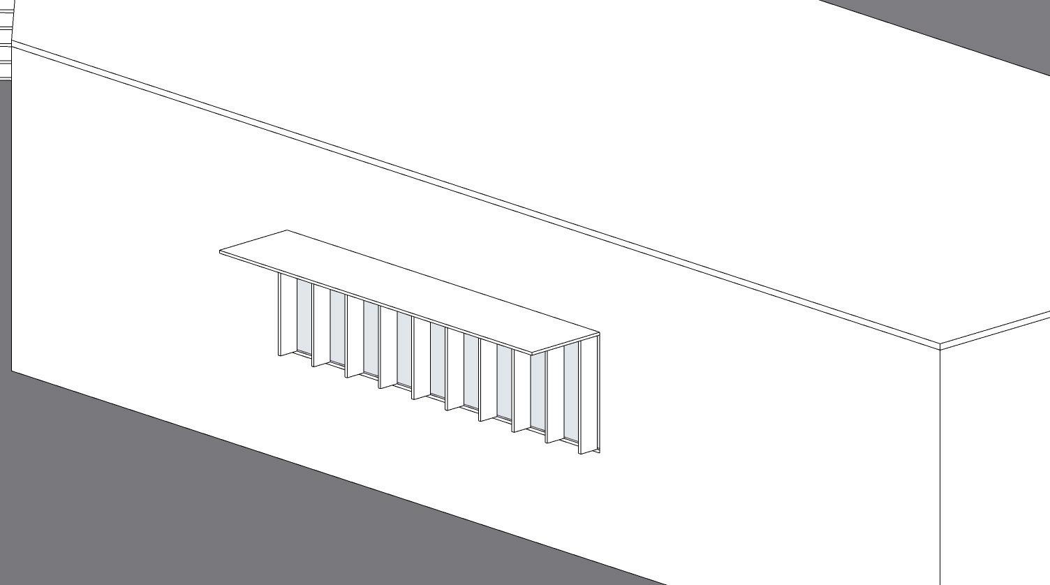 La fachada C requiere de celosías verticales con aproximadamente 30° de protección en el lado izquierdo y 45° en el lado derecho, complementadas con un alero superior a 25°