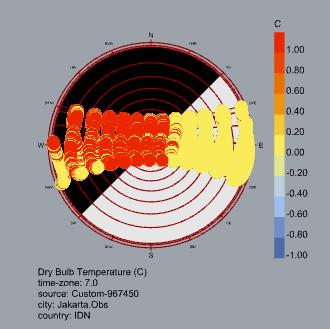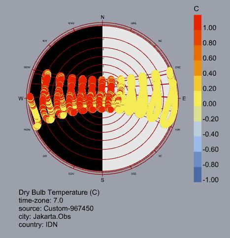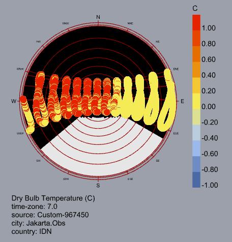El análisis bioclimático de Yakarta evidencia un clima cálido y húmedo estable durante todo el año, sin estaciones marcadas y con temperaturas que permanecen entre 26 °C y 30 °C. Estas condiciones generan una alta sensación térmica y demandan estrategias enfocadas en el enfriamiento y control de humedad.