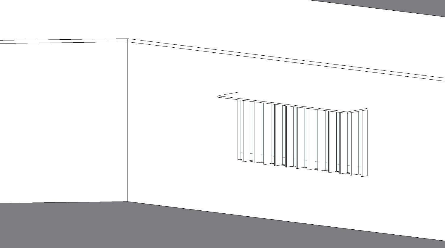 La fachada C requiere de celosías verticales con aproximadamente 30° de protección en el lado izquierdo y 45° en el lado derecho, complementadas con un alero superior a 25°