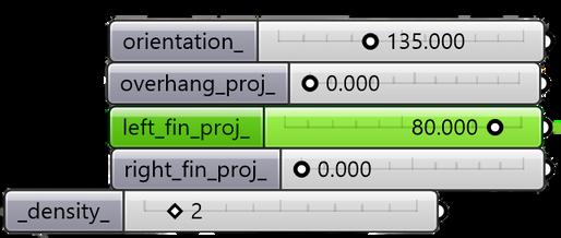 La fachada D requiere de celosías verticales con aproximadamente 80° de protección.