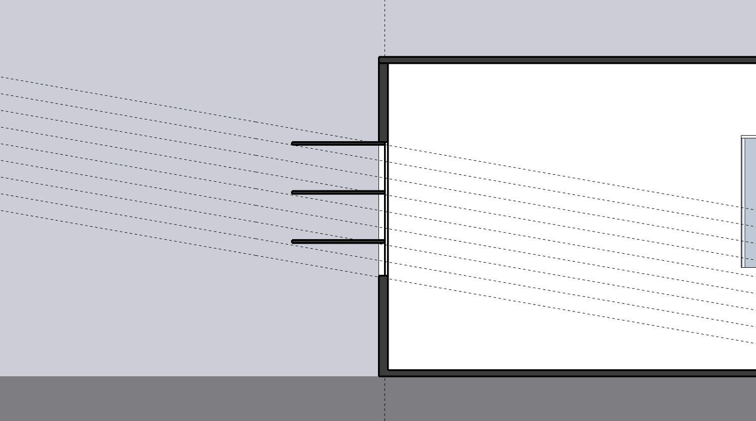 La fachada B requiere de aleros horizontales muy profundos para proteger del sol con ángulos altos aproximadamente 80°