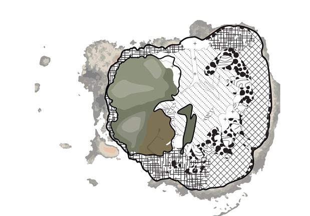This secret world of nonhuman entities grows and stretches to the ‘surface’ of our world. Where the two worlds meet - a landscape and a mythscape, we see another type of relationship forming. The earth knows only a glimpse of what exists underneath, a molting formation of chambers, each idiosyncratic in their occupant and formation.
