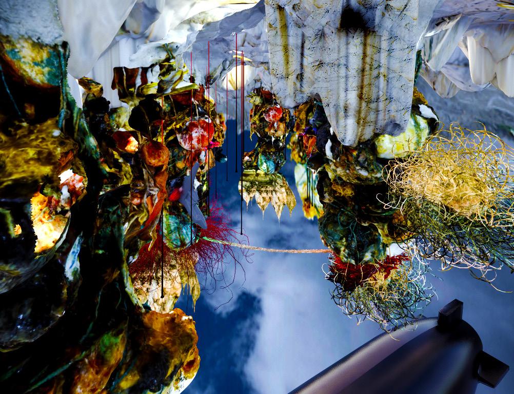 Mother Dragon is a dreamscape that spawns and grows, nests and fills, cultivates and decays. A Dragon is commonly found in Mythologies, a series of stories that blend the space between human and earth, animals and plants, their phenomena are interchangeable and constantly in flux. Folk tales and mythologies use stories to merge and homogenize the differences between being, but also celebrate their commonalities.
