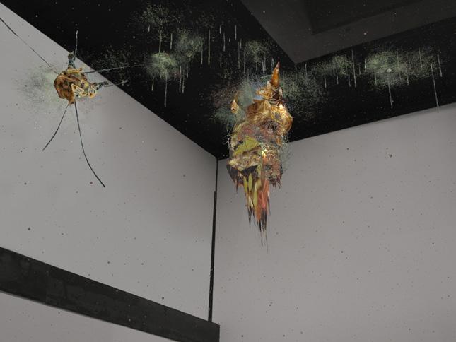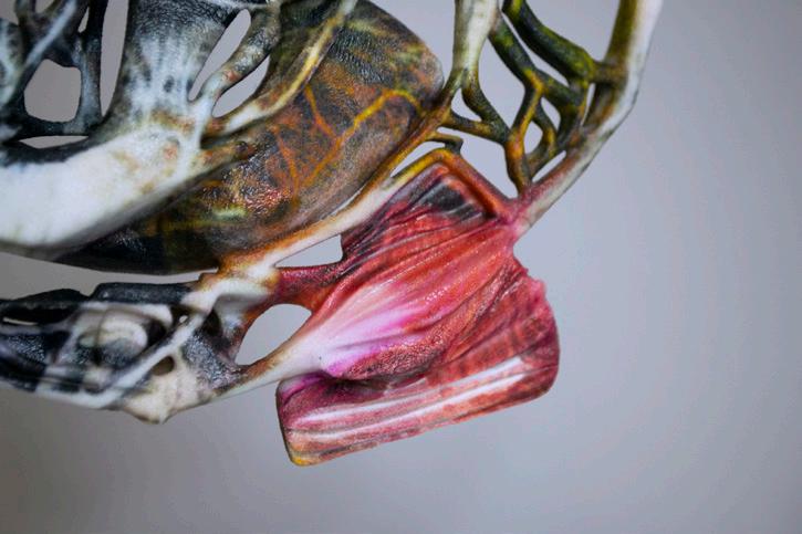 Using the form of a beetle as a specimen of natural phenomena and structural tectonics, we engaged the neural network repeatedly with images of biological and architectural features. The images that emerged were analyzed, dissected and categorized into structures of rigidity, areas of decay and potential objects of capture or absorption. Many assumptions were based on our human-centric understanding of these non-human agencies, but the more we attempted to inform the design in 3D and understand this new specimen, it eventually took a life of its own.