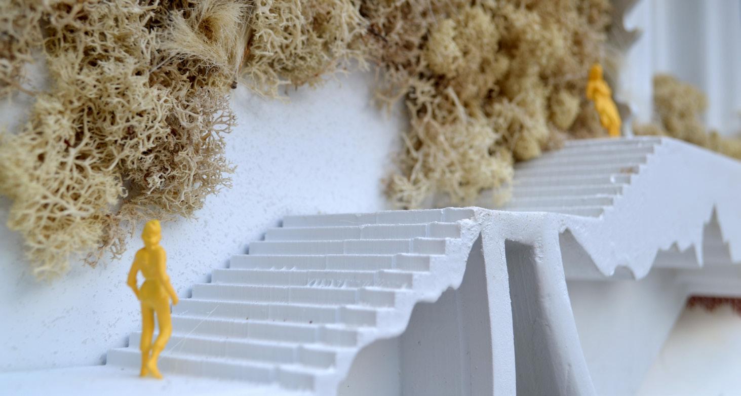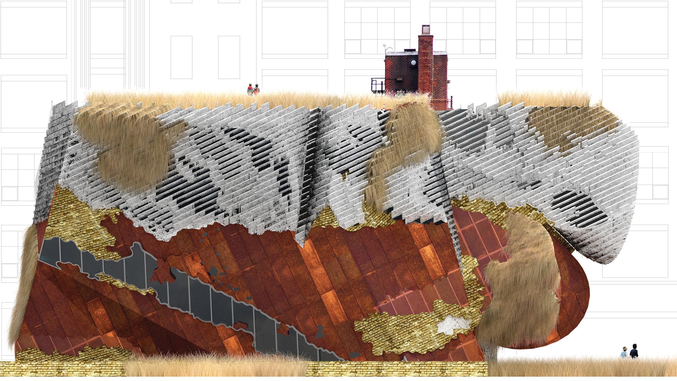 Early explorations of materiality looked into deteriorating and defamiliarizing form. Layers of concrete, brick, corten, and foliage build and deform to create a facade that is neither completely urban nor pastoral. Materiality evolved beyond a surface treatment, becoming spatial through extruded louvers and fluting,