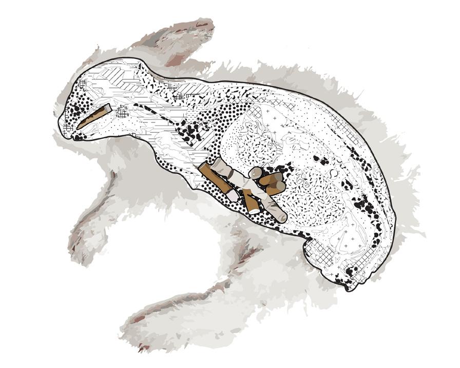 Donna Haraway said that “by the late 20th century in scientific culture, the boundary between human and animal is thoroughly breached”. Looking at these systems of hybridity, we cataloged ideas of animals and human, animal and object, animal and parasitic artifacts. The idea of hybrid is the borrowing of multiple parts within a whole, existing in sequence with one another, and without hierarchy. Rather, a cholarchy of relationships feed off of one other, whether it be symbiotic, parasitic, or coexisting. Ignoring the importance of nonhuman entities may lead to the downfall of human civilization.