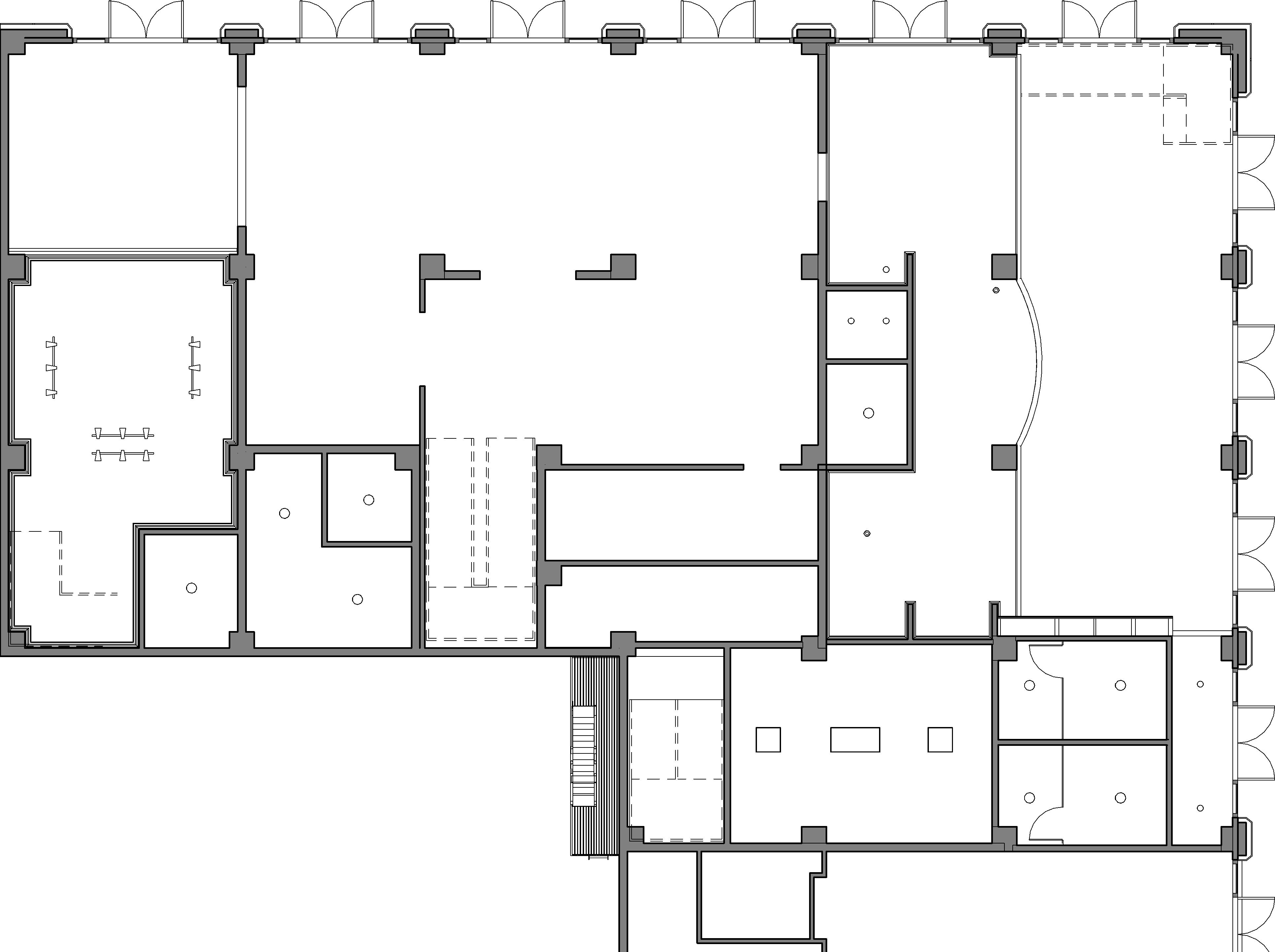 The reflected ceiling plan ensures that the ceilings complement the building’s neoclassical style. Many areas feature ceilings with elegant crown moldings, similar to thhe original design. These detailes are highlighted with uplighting to enhance the architectural feature. The ceiling designs in other parts of the building will follow this style and pattern, creating a cohesive and visually appealing environment throughout.