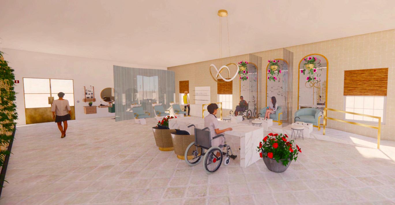 Custom designed pedicure seats with accessible ramps. Hair salon for residents to take care of their appointments within a safe setting so the residents can maintain a sense of self-worth and dignity.