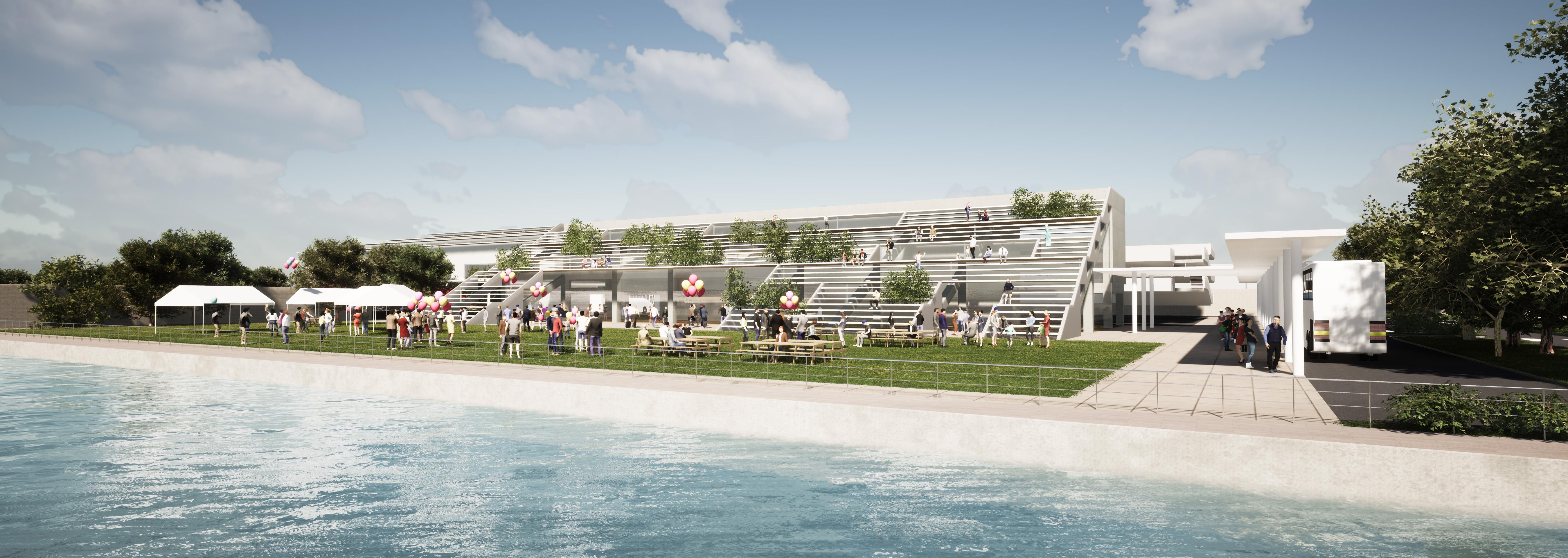 環境にやさしい省エネ計画/長寿命化/木質化 ホーバーの魅力を見て学べるピットイン広場 、明るくダイナミックな空間をつくる ル フは建物を フ タ しずのように夏 日 熱 部に取り入れながら、西日の ギ 消費量を削減します。効 化を図ります。ステップル じられ 奥行きの大きな艇庫には、ステップルーフの隙間から自然光 を取り入れ、明るいメンテナンス空間とします 、自然光と木につつまれた空間とします ホ バ のピットインしている状況を見学 広場」を設けます ピットイン広場からは られたホ バ などメンテナンスの様子を 行中のホーバ とは違 た魅力を伝える場 プト(エ)木の温かみが感じられるタ ミナ 西大分 コンセプト(イ)日常的なにぎわいや新たな出会いを生む イナ に努 でな でき タクシー ロータリー 上階の設備配置で津波と塩害対策 イベントや店舗客席で使える出会いの場 ■ 待 は す 整 省 機器 採用 。 気設備はLED照明を採用し、自然採光を 取り入れながら照度を確保します。 艇庫 観光バス ロータリー シャッター開口 サイズは防音壁 と合わせて検討 防音壁 クレーン50t スパン20m 滑走路 乗り場 艇庫 滑走路側1スパンの柱/梁 その他スパンの柱/梁 3m 3m 関節光を取り込み 3m 1.8m 天井木質化 8m 8m ホーバーの魅力を感じる視点場と ホーバーの魅力を見て学べるピットイン広場 コストを抑え、明るくダイナミックな空間をつくる 空港からスムーズに誘導する動線計画 来県者が最初に体験する大分の木質空間 、ステップルーフの隙間から自然光 。内装は木質 ホ バ のピットインしている状況を見学できる「ピットイン 広場」を設けます。ピットイン広場からはクレ ンに吊り上げ られたホ バ などメンテナンスの様子を見ることができ、走 行中のホ バ とは違 た魅力を伝える場となります。 空港 コンセプト(ア)本県の玄関口にふさしい景観 (ウ)利用 空港 コンセプト(ア)本県の玄関口にふさしい景観 (ウ)日常的 西大分 コンセプト(イ)日常的なにぎわいや新たな出会いを生むタ ミ 、ス 少 立さ 木 搭乗 か かみ 西大分 コンセプト(エ)木の温かみが感じられるタ ミナル スロ プで敷地と全面道路の段差を解消 ズにタ ミナルにアクセスできる計画と 緩 突 ステ プ フは周 か た人 タ ミ マ ま 国東側のステップル フはホ バ の魅力であるドリ ト走行を臨 場感とともに見学 なります。空港か はもとより、国東 ドリフト走行を見学にくる利用者 にも開かれた場所です。 主構造はRC造とし、仕上げ材に県産材を 木質デ 口にア 抜けて 体験で 空港 コンセプト(ア)本県の玄関口にふさしい景観 (エ)木の 日常の遊び場 ピットイン広場から艇庫を見る ステップルーフの艇庫屋根 艇庫 観光バス ロータリー シャッター開口 サイズは防音壁 と合わせて検討 防音壁 ピットイン広場平面イメージ ±0m スロープ 空港1階平面イメージ 待合 ±0m +1.75m WC 授乳 info 待機室 ホーバー乗り場 ±0m ±0m ステップ/RC造 全面道路+2.9m 艇庫 滑走路側1スパンの柱/梁 その他スパンの柱/梁 3m 3m 3m 有効16m 1.8m 300Φ 8m ホーバーの魅力を感じる視点場となるステップルーフ 環境にやさしい省エネ計画/長寿命化/木質化 ステップルーフで自然光を取り入れた明るい艇庫 ホーバーの魅力を見て学べるピットイン広場 コストを抑え、明るくダイナミックな空間をつくる 空港からスムーズに誘導する動線計画 来県者が最初に体験する大分の木質空間 、日常的なくつろぎのスペ スと もみんなが利用でき、にぎわいを で内外が繋がる空間とします。 ル ィルタ としても機能します。す 日射熱取得を抑制し、柔らかい光 、西日の強烈な日差しを遮り施設 ます。効率のよい施設計画で施設 ップル フは木質化を行い施設内外 られる空間とします。 奥行きの大きな艇庫には、ステップルーフの隙間から自然光 を取り入れ、明るいメンテナンス空間とします。内装は木質 化し、自然光と木につつまれた空間とします。 ホ バ のピットインしている状況を見学できる「ピットイン 広場」を設けます。ピットイン広場からはクレ ンに吊り上げ られたホ バ などメンテナンスの様子を見ることができ、走 行中のホ バ とは違 た魅力を伝える場となります。 西大分 コンセプト(ア)本県の玄関口にふさしい景観 (エ)木の温かみが感じられるタ ミナル 空港 コンセプト(ア)本県の玄関口にふさしい景観 (ウ)利用者にやさしいタ ミナル 空港 コンセプト(ア)本県の玄関口にふさしい景観 (ウ)日常的なにぎわいや新たな出会いを生む空間 るタ ミナル その他提案 西大分 コンセプト(イ)日常的なにぎわいや新たな出会いを生むタ ミナル 艇庫は鉄骨造とし、スパンの大きなダイナミックな大空間を少 ない構造部材で成立させ、コスト縮減に努めます。仕上げで木 質化を行うことで搭乗員、整備士のみでなくピットイン広場か ら見学する人が温かみを感じることができる計画とします。 西大分 コンセプト(エ)木の温かみが感じられるタ ミナル スロ プで敷地と全面道路の段差を解消し、空港側からスム 