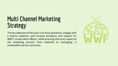 The key objective of this plan is to drive awareness, engage with a diverse audience, and increase donations and support for WWF’s conservation efforts—while ensuring that every aspect of the marketing process, from materials to messaging, is sustainable and eco-conscious.