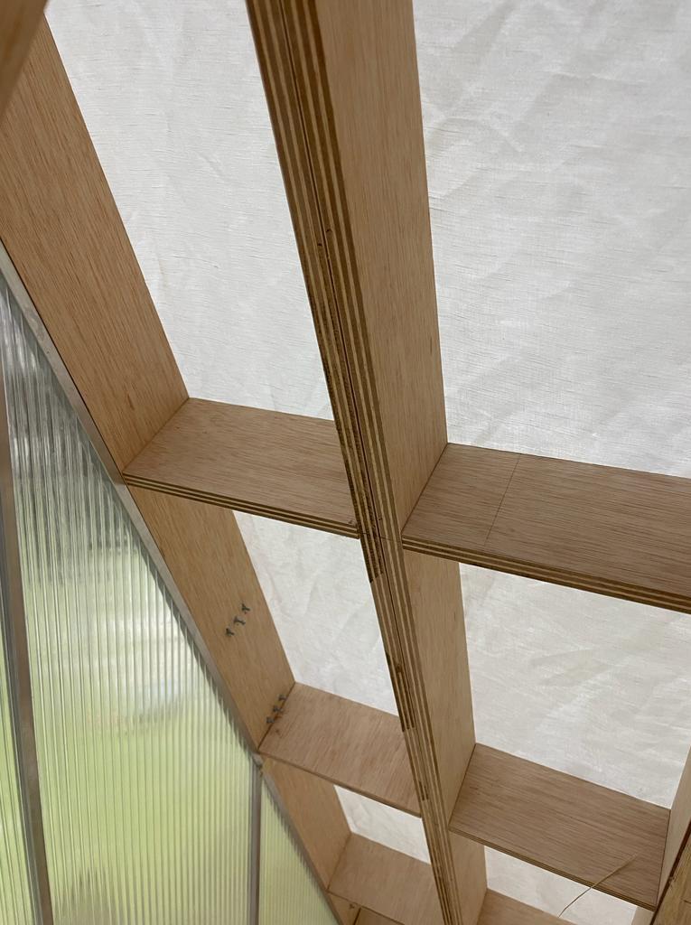 exterior cube allows for model to be oriented in any way, show flexibility of space and floating nature of structure