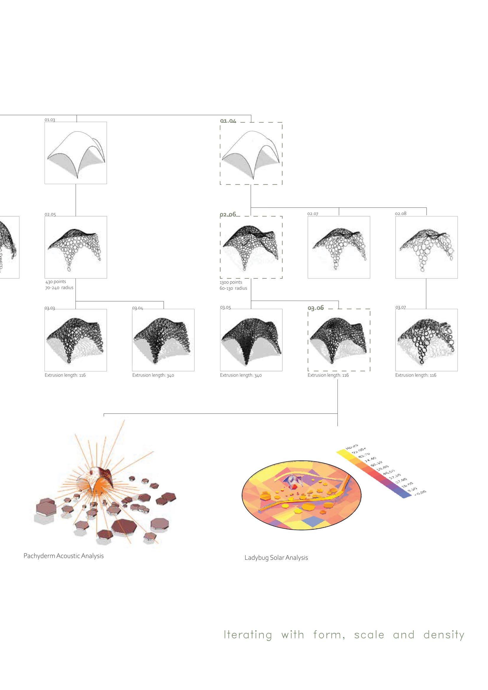 To create a pavilion, using parametric modeling (Grasshopper) to facilitate a quartet performance and lunchtime seminar.