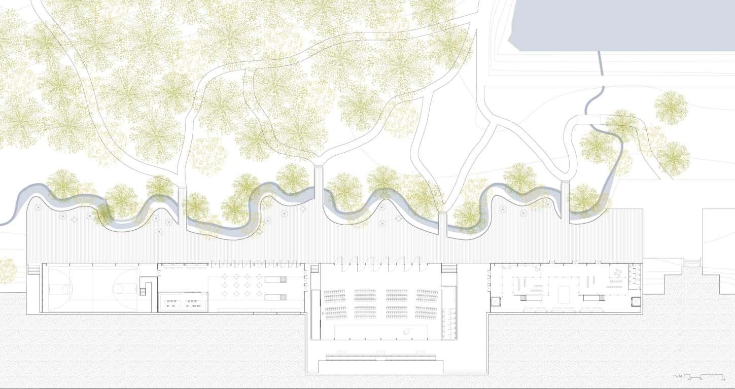 The “Barns” and auditorium space have been carefully designed with an Environ auditorium allows natural light to enter the underground space while the complex and allow for different levels of transparency. The design also, implicitly DESIGN