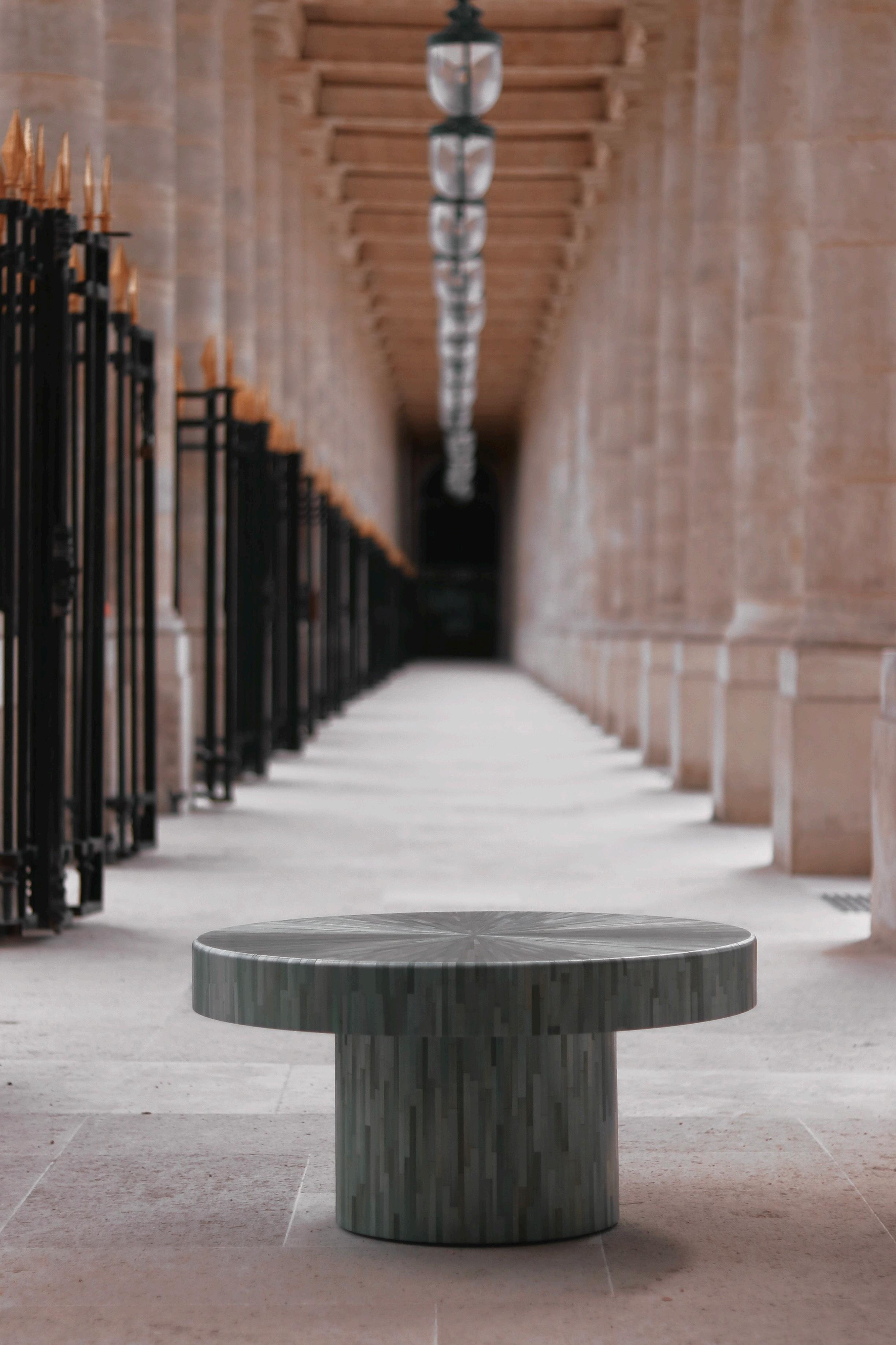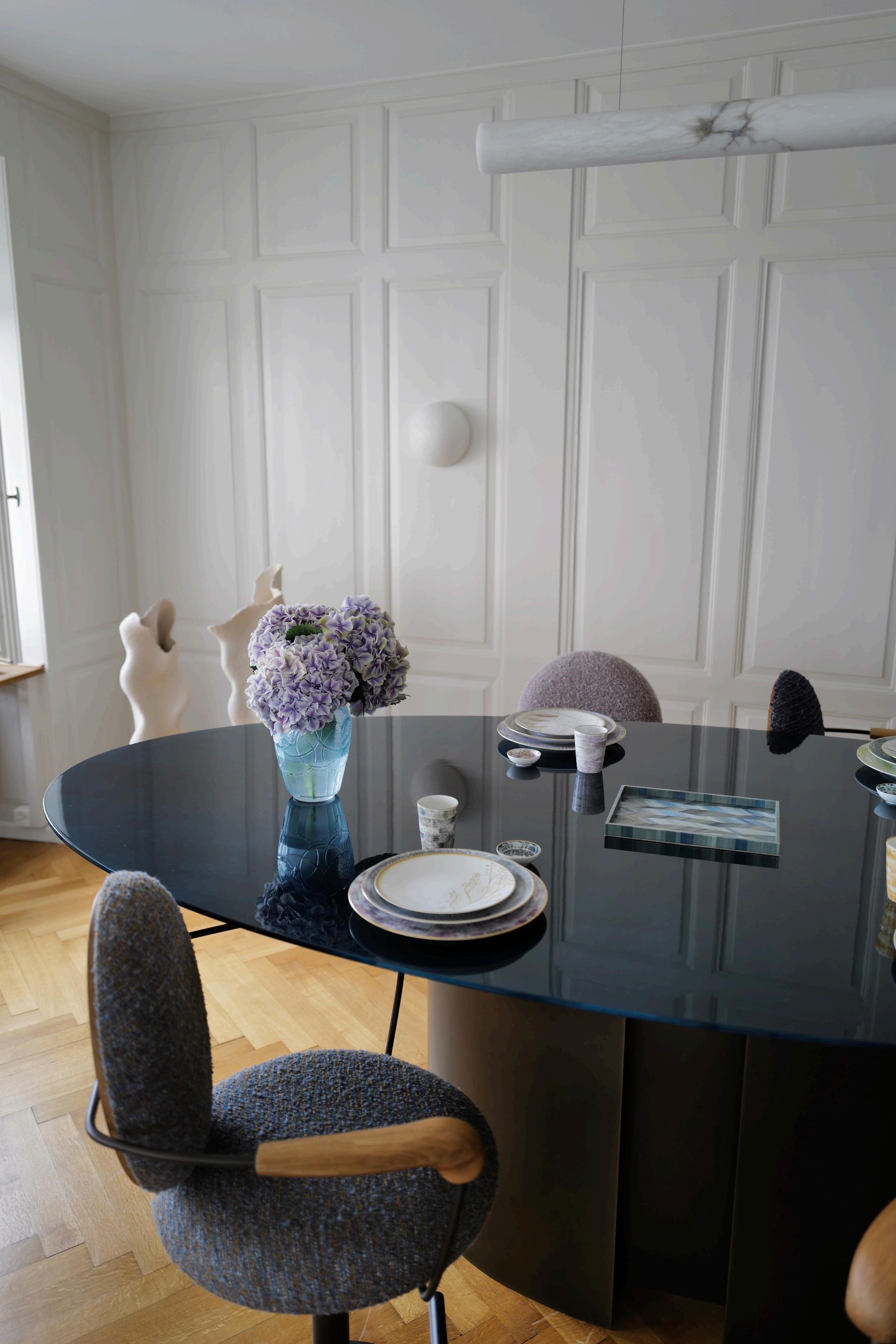 Combines sophistication with natural beauty. Its mirror-like tabletop reflects the serene green tones of Switzerland's mountain lakes, evoking calm and freshness.