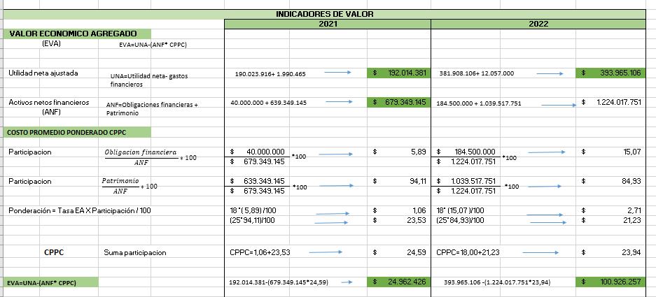 • Valor Económico Agregado: para el año 2021 el valor del EVA es de 24.962.426 respecto al año 2022 que fue de 100.926.257 como vemos fue un gran aumento para empresa Voktriss Sport.