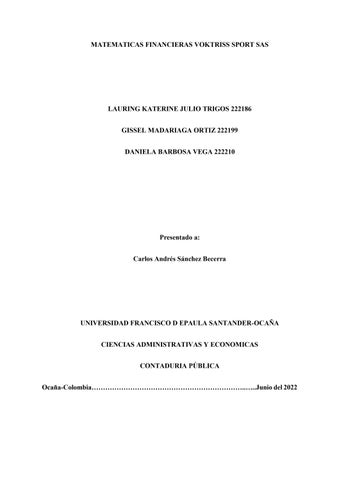 MATEMATICAS FINANCIERAS VOKTRISS SPORT SAS