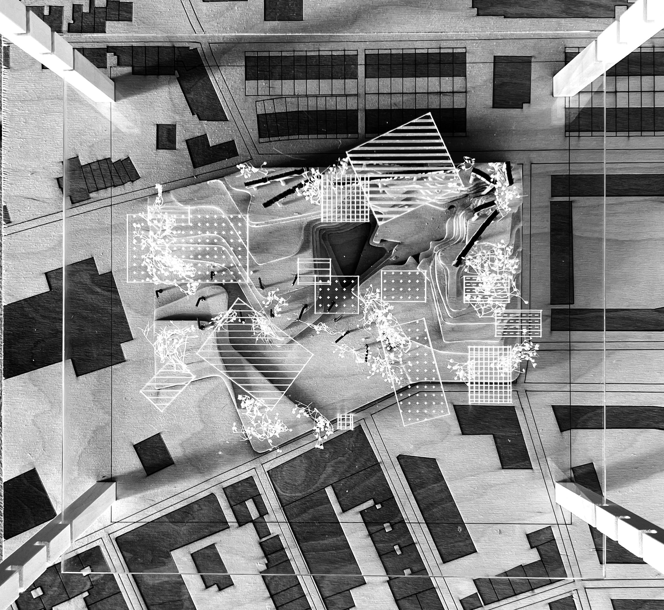 Diagrammatic physical model of a precedent study: Parc dels Colors by EMBT digital