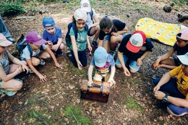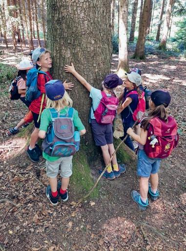 gerne die feinen, jungen Knospen der Bäume anknabbern. Bei der 125-jährigen Weisstanne brauchte es vier Kinder, um den Baumstamm zu umarmen. Sie durften der alten Tanne Fragen stellen, die von ihr (alias Roman) beantwortet wurden. Der erste Teil der Entdeckungstour endete auf Uzwils höchstem Punkt, wo wir uns bei Roman bedankten und ihn verabschiedeten. Danach genossen die Kinder ihren Zvieri und spielten gemeinsam. Bei einem lauschigen Plätzchen hörten sie eine schöne Geschichte und erhielten eine Becherlupe. Nun hatten sie wieder allerhand zu tun, denn mit dieser Lupe konnten sie Tiere und Pflanzen noch genauer betrachten. Es hätte noch lange so weitergehen können – aber um fünf Uhr wurden die fröhlichen Kinder abgeholt. Der Nachmittag ging zu Ende und alle nahmen einen Rucksack voll erlebnisreicher Erfahrungen mit nach Hause.