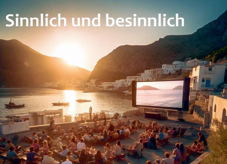 Dank wohlverdienter Entspannung und verlängerter Ruhezeit erzielen Impulse gerade in der Sommerzeit besonders gute Resultate. Deshalb haben wir zwei sommerliche Einladungen für Sie, eine zum Mitsingen und eine zum griechischen Filmabend. Am Samstag, 22. Juli, sind interessierte Sänger/-innen aus der Region (Anfänger und Fortgeschrittene) zum Feriensingen 2023 in Oberuzwil eingeladen: Probe um 15 Uhr, Auftritt um 18 Uhr! Zwei Wochen später heisst es dann: Kurzurlaub im Süden. Im Openair-Kino Uzwil bieten wir am Samstag, 5. August, einen sinnlich-besinnlichen «griechischen Abend» mit passendem Spielfilm auf der Grossleinwand. Mehr zu beiden Einladungen auf Seite 9 kath-uzwil/veranstaltungen 7 | JULI 2023
