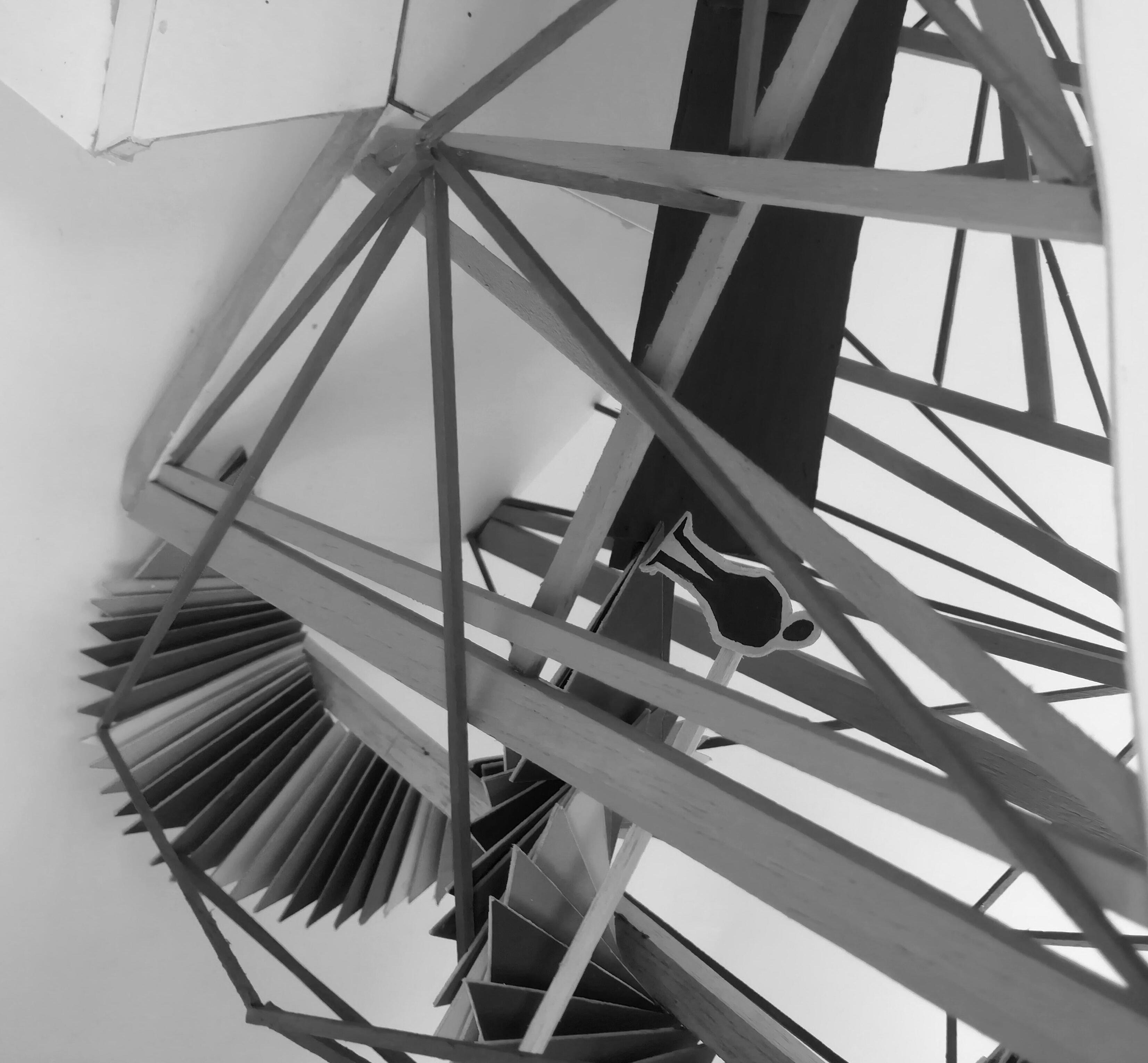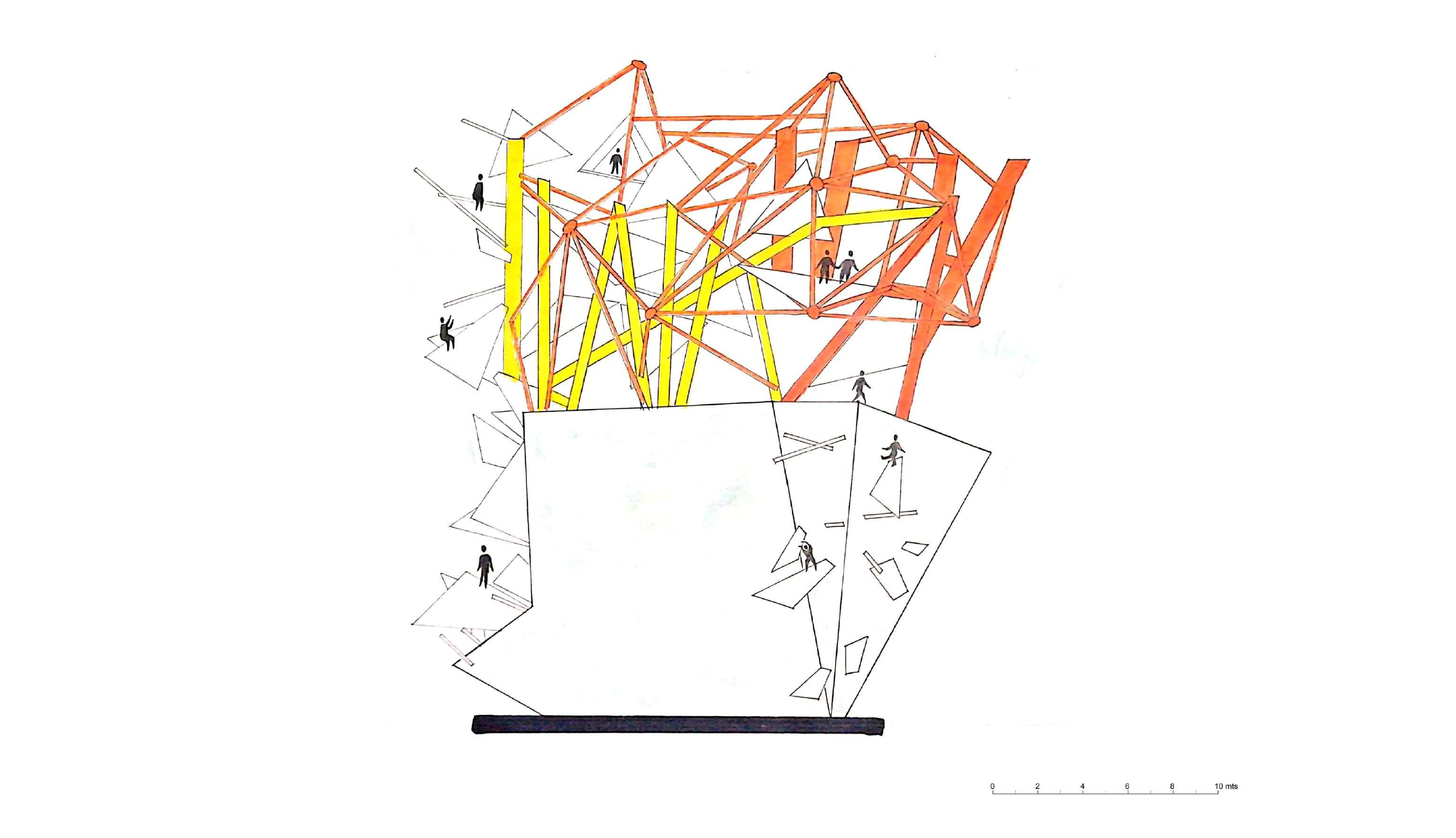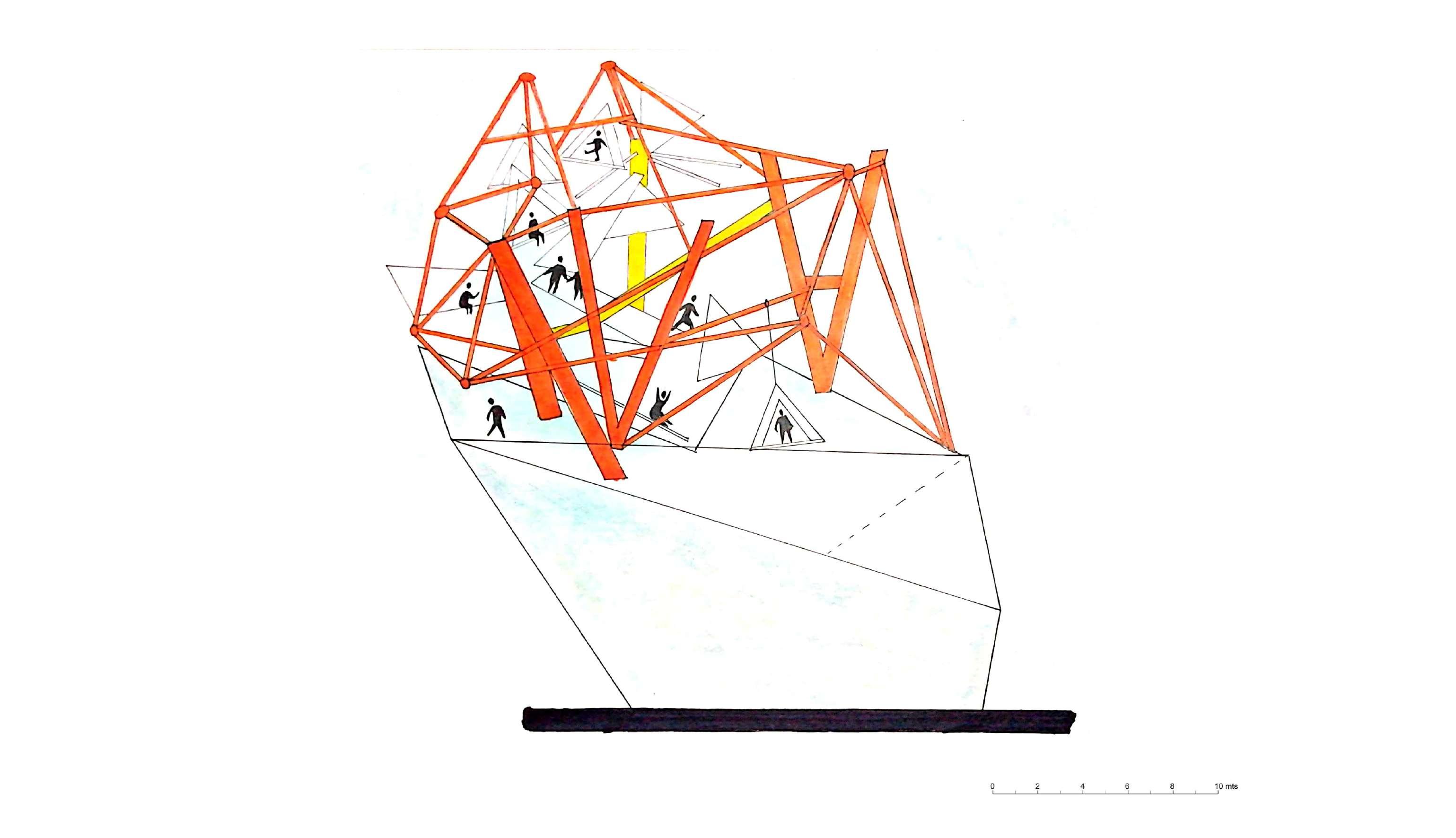 Se parte desde la abstracción de una camara fotografica antigua,de la cual se toman aspectos geometricos importantes y se inicia una experimentación espacial, hasta llegar a la composición final la cual es una serie de elemenos destinados y a la recreaión.