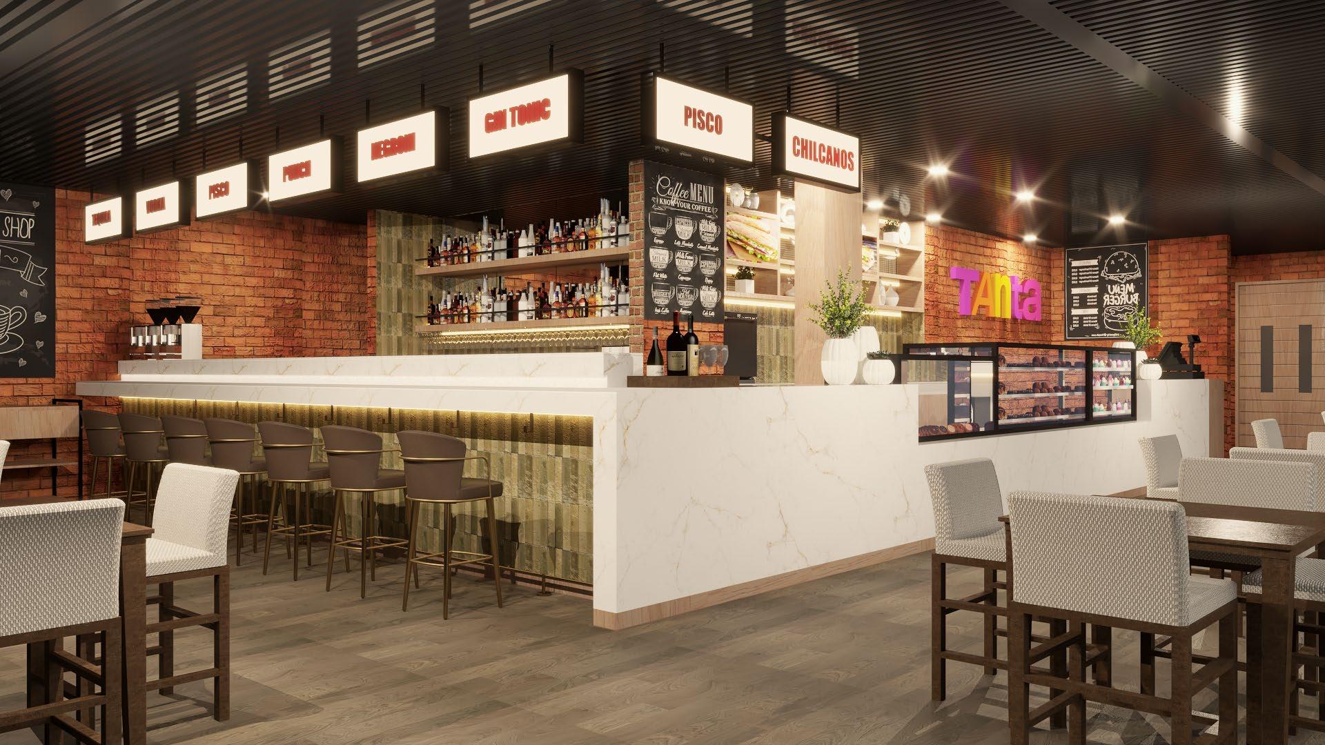This interior remodeling project for the renowned restaurant chain Tanta aimed to modernize and optimize three key zones— the bar, dessert area, and kitchen. The design maintains the brand’s contemporary and vibrant identity, preserving its Peruvian essence through a sophisticated, functional, and technological visual language with a rustic-industrial aesthetic.