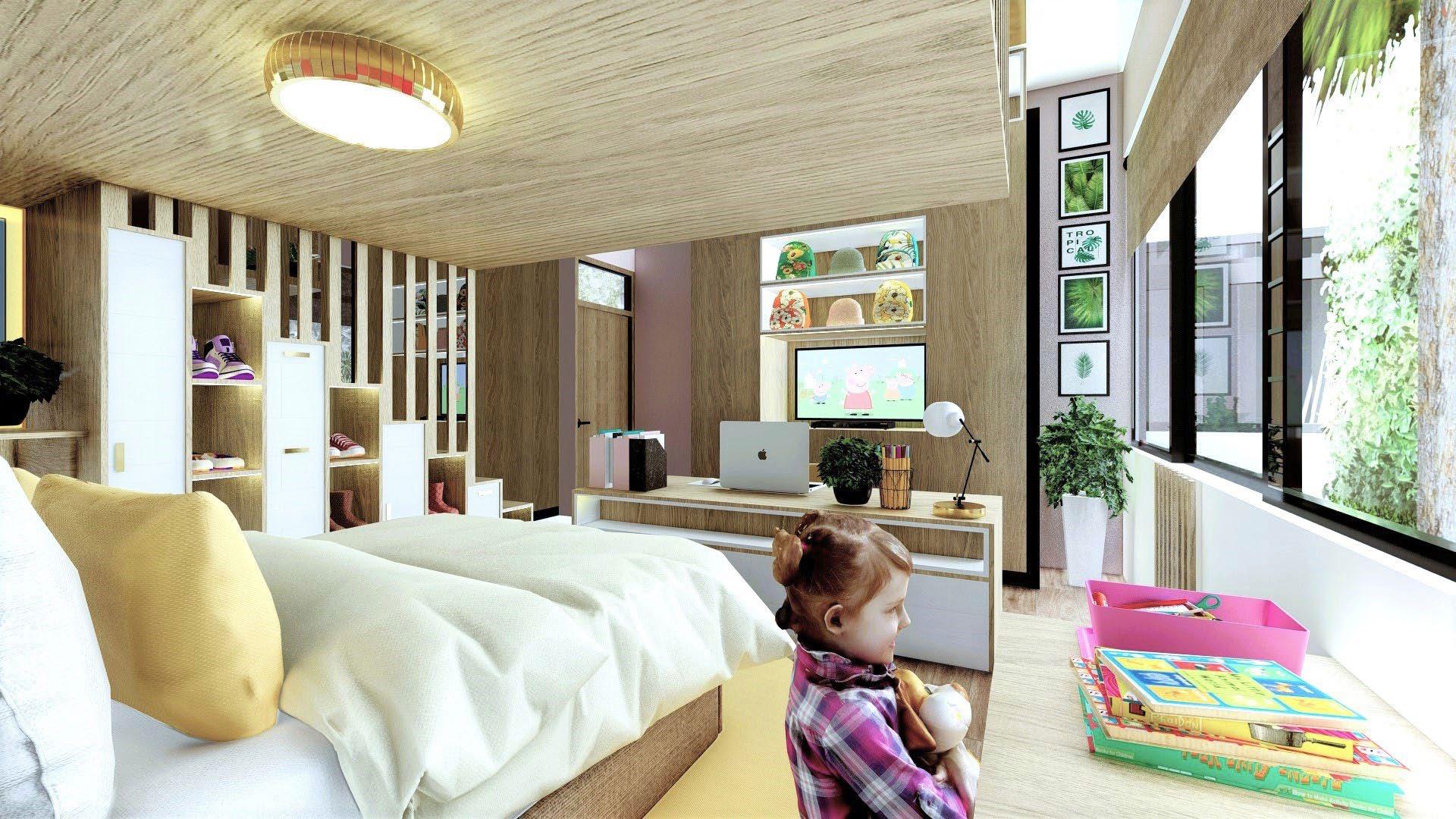 Overall, the design creates a harmonious and serene space that integrates functionality, aesthetics, and user well-being, responding to the occupant’s needs to provide a comfortable atmosphere where they can feel at ease and happy in their room.