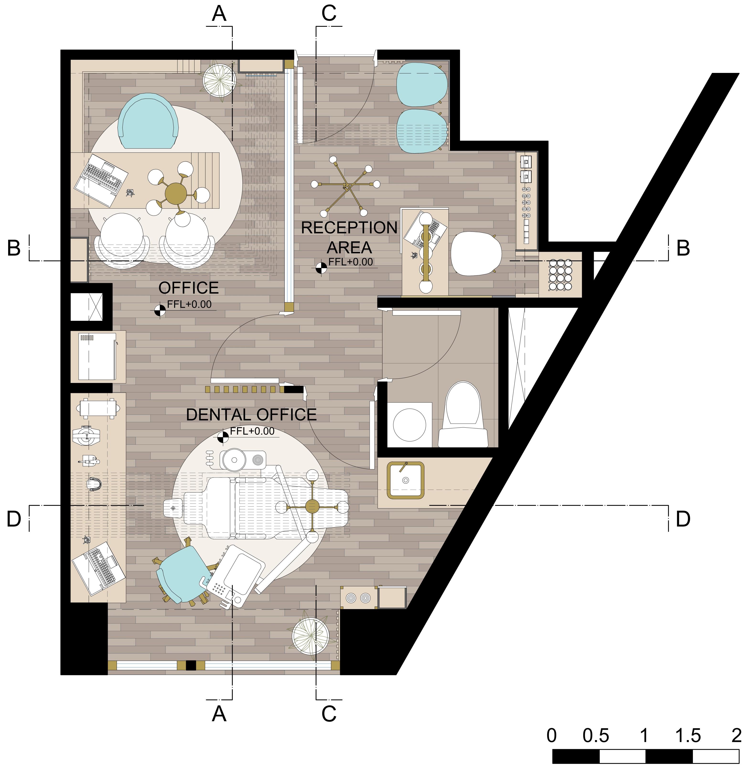 Altogether, the project achieves an elegant, functional space consistent with the dentist’s personality and fully adapted to the needs of her professional practice. The design was developed according to her personal tastes and specific work dynamics, creating a clinic where she can feel comfortable, confident, and emotionally supported while attending each appointment with her patients, turning her everyday workspace into a place that she enjoys and feels happy to inhabit.