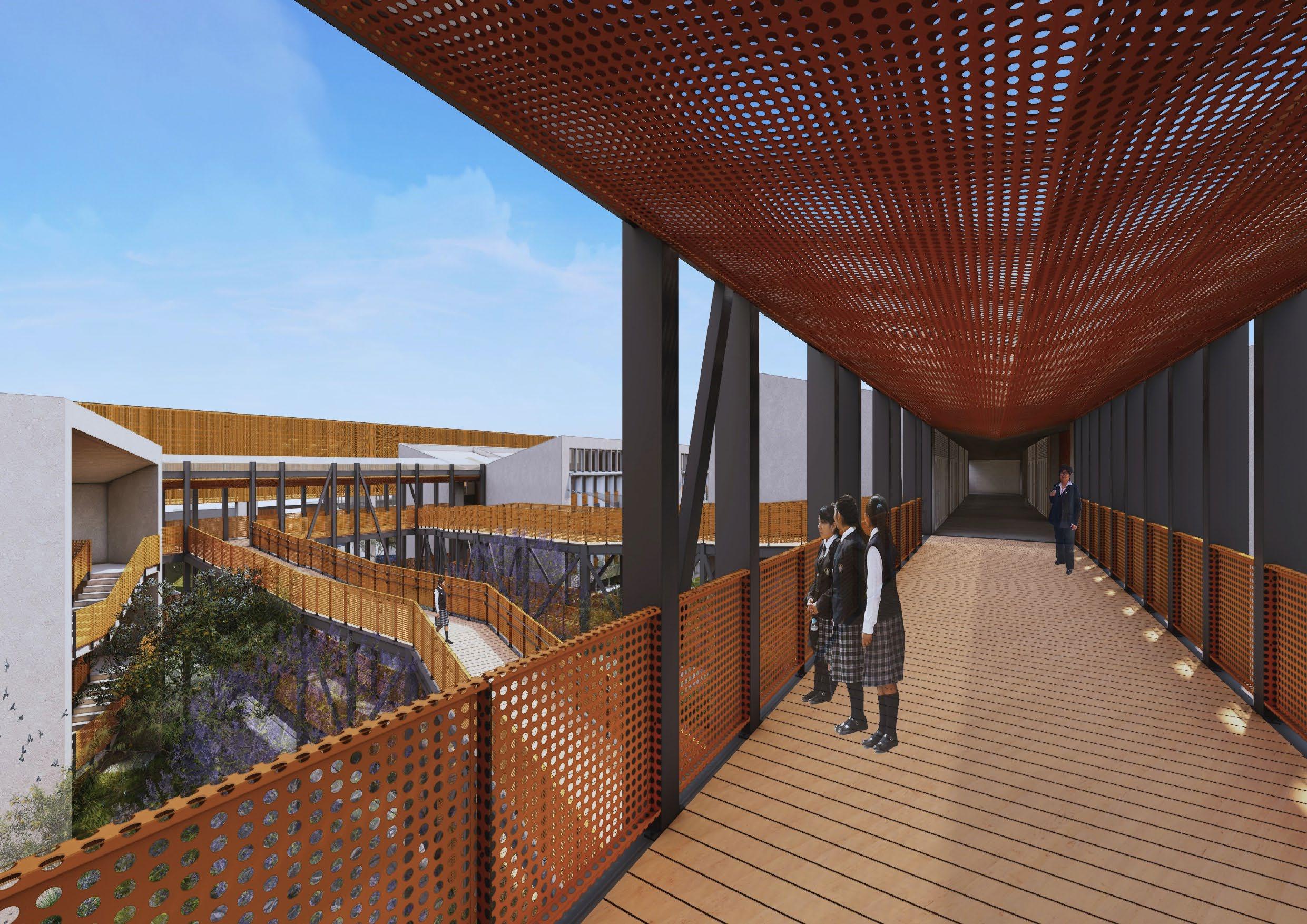 Interior design supports the educational experience through ergonomic furniture, pedagogically aligned equipment, and finishes and colors that stimulate concentration, creativity, and active learning. Elevated bridges and ramps ensure universal accessibility, while outdoor areas—green spaces, courtyards, and bio-gardens—promote outdoor learning. Altogether, the project reimagines public education as a modern, inclusive, and emotionally engaging environment.