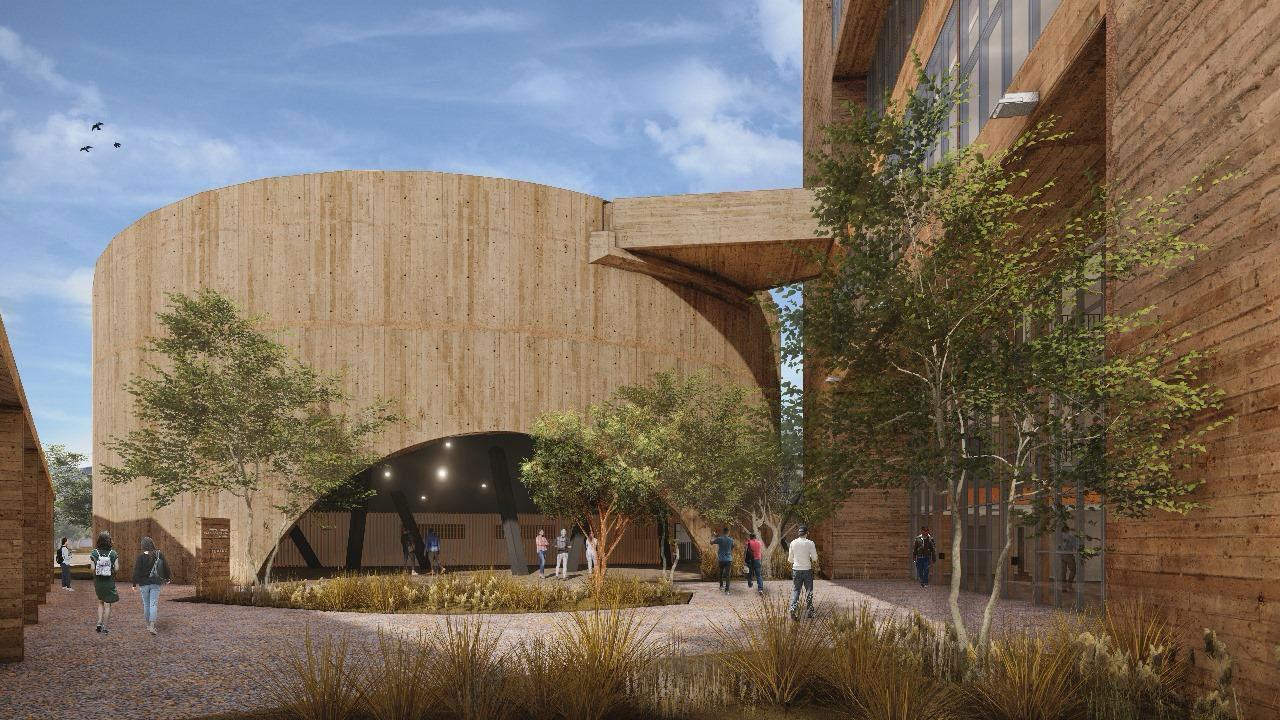 Sustainable and locally sourced materials—reddish concrete, wood, and compacted earth—ensure durability, low maintenance, and coherence with Andean constructive traditions, fostering new educational, social, and cultural dynamics within the university community.