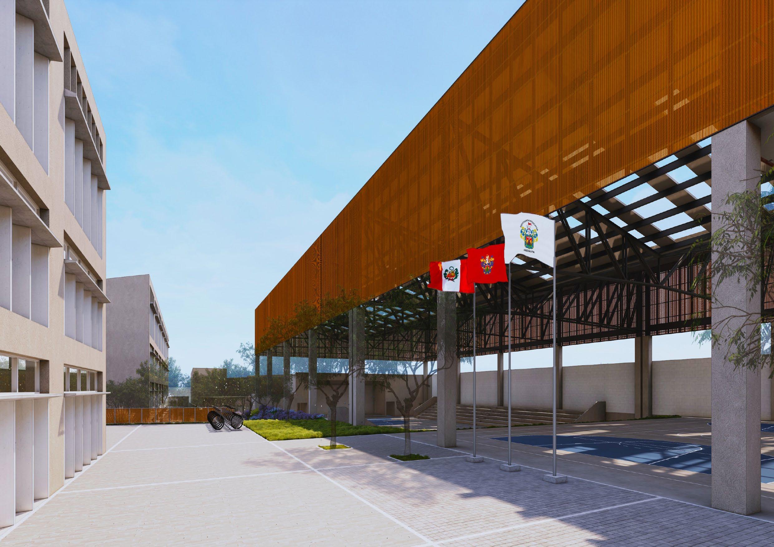 The proposal follows the guidelines of the National Program for Educational Infrastructure (PRONIED) and is organized through interconnected functional blocks that house the primary and secondary levels, administrative zones, service areas, and sports facilities. These volumes are articulated by plazas, courtyards, and pedestrian circulations at different levels, taking advantage of the site’s natural topography and creating a fluid and hierarchized spatial sequence.
