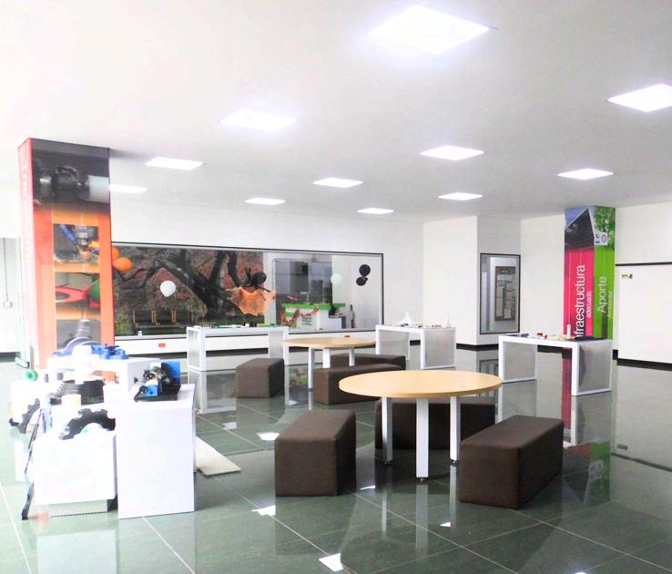 Diseño, desarrollo e instalación de mobiliario personalizado y exhibidores de producto. Para empresa de ingeniería de plásticos.